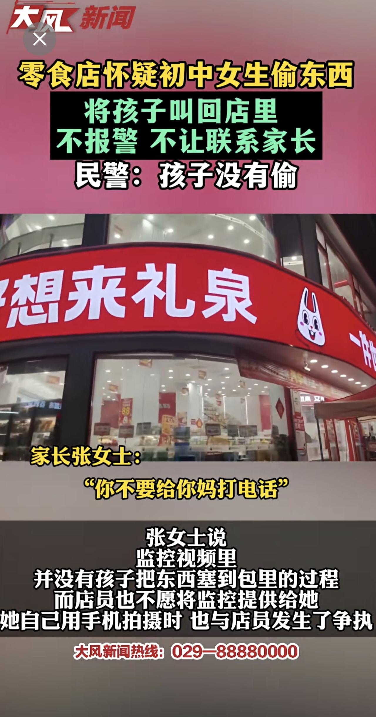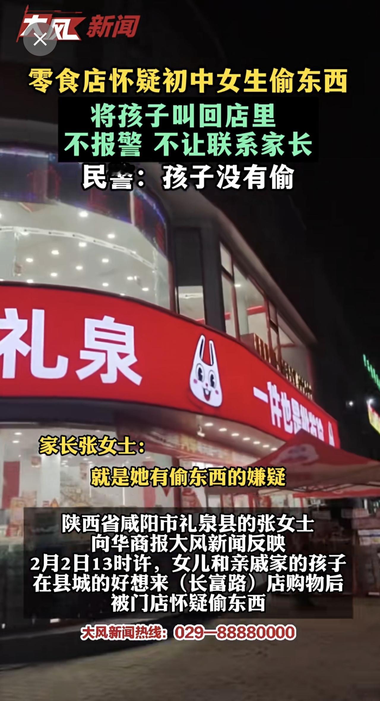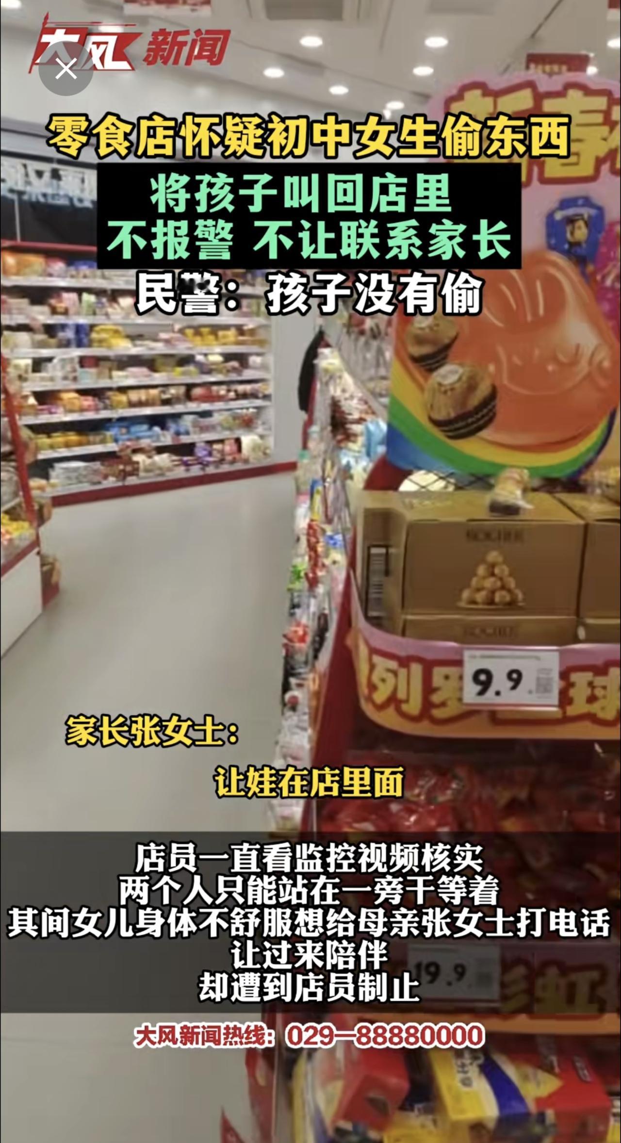 零食店怀疑初中女孩偷东西,将孩子叫回店里,不报警、不让联系家长 民警:孩子并没有偷