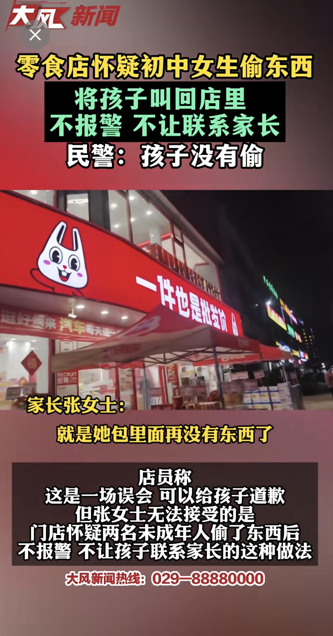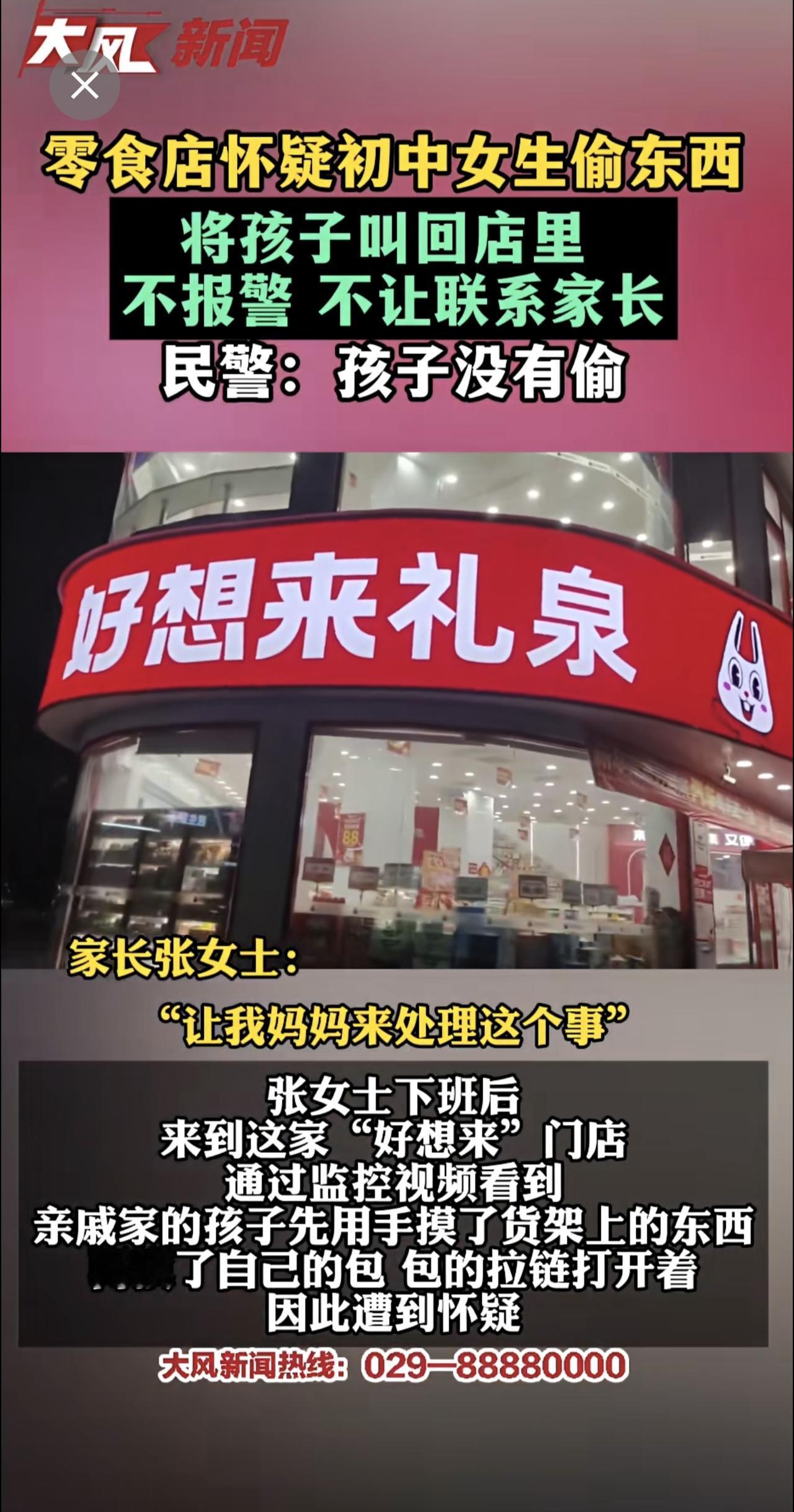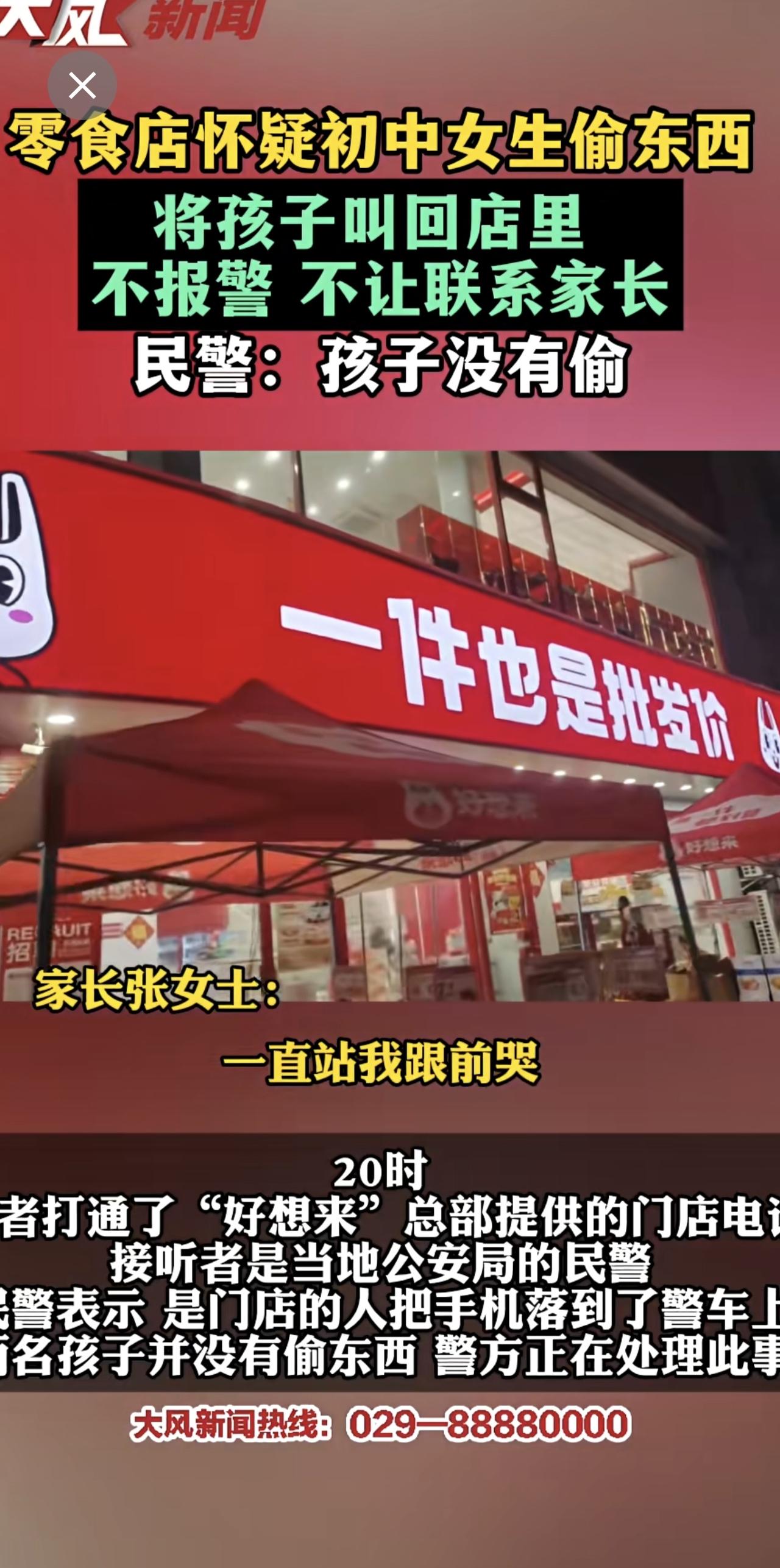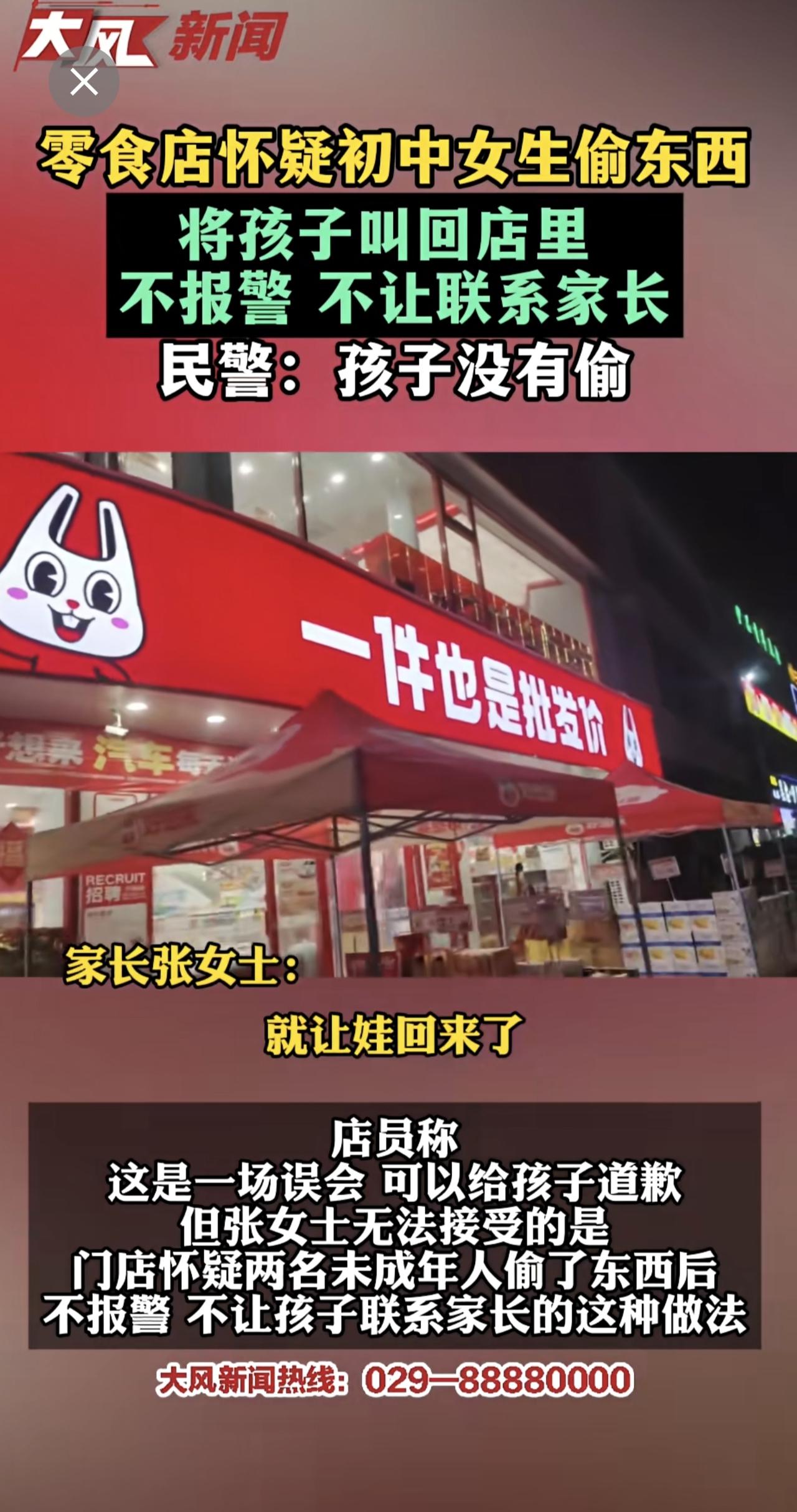 零食店怀疑初中女孩偷东西,将孩子叫回店里,不报警、不让联系家长 民警:孩子并没有偷