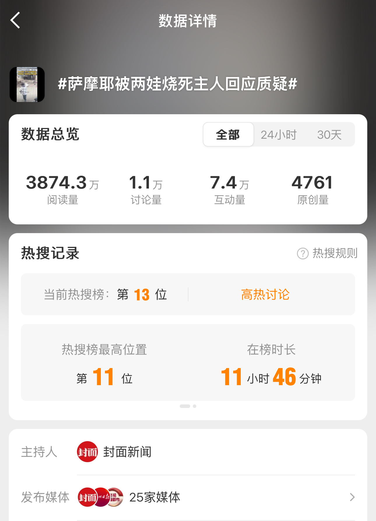 萨摩耶被两个小孩玩火意外烧死媒体做了9个以上的热搜不断的引导公众情绪博取流量萨摩