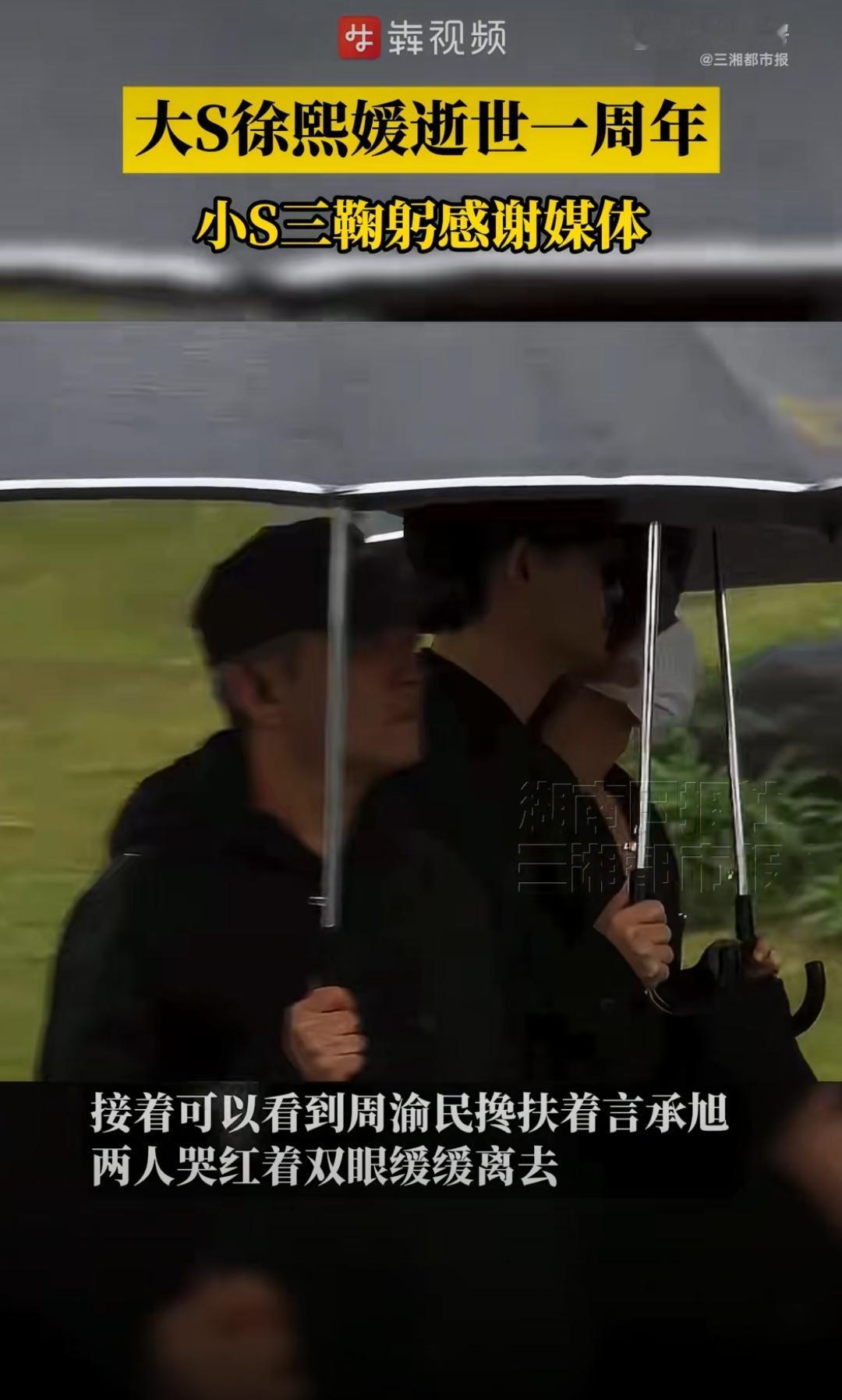 雨中等一场青春告别!周渝民扶哭红眼的言承旭,大S纪念仪式看哭全网 2月2日的金宝山,雨丝裹着思念落了满场,大S逝世一周年纪念雕像揭幕,这场追思宴,聚齐了半个台娱的温暖。 具俊晔设计的雕像藏满爱意,S妈、小S和他雨中揭幕,耳边是大S作词的《姐妹情深》,熟悉的旋律一响,现场的泪就绷不住了。周渝民和言承旭罕见同框,全程黑衣肃穆,离场时言承旭哭红了眼,周渝民默默扶着他的手臂,两人在雨里缓步前行,不说一句话,却藏尽了对老友的惦念。 小S强忍悲恸,向冒雨赶来的媒体三度鞠躬,这一天,是告别,也是所有人对大S最深的念想。