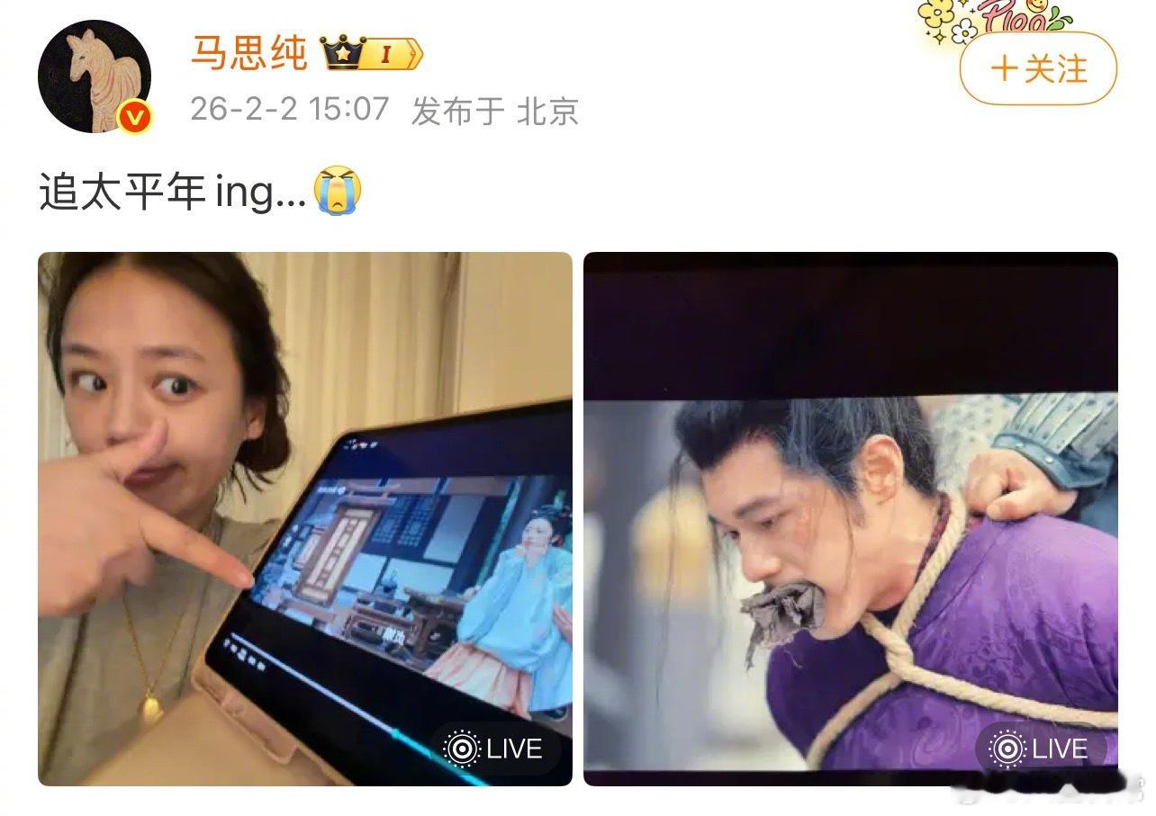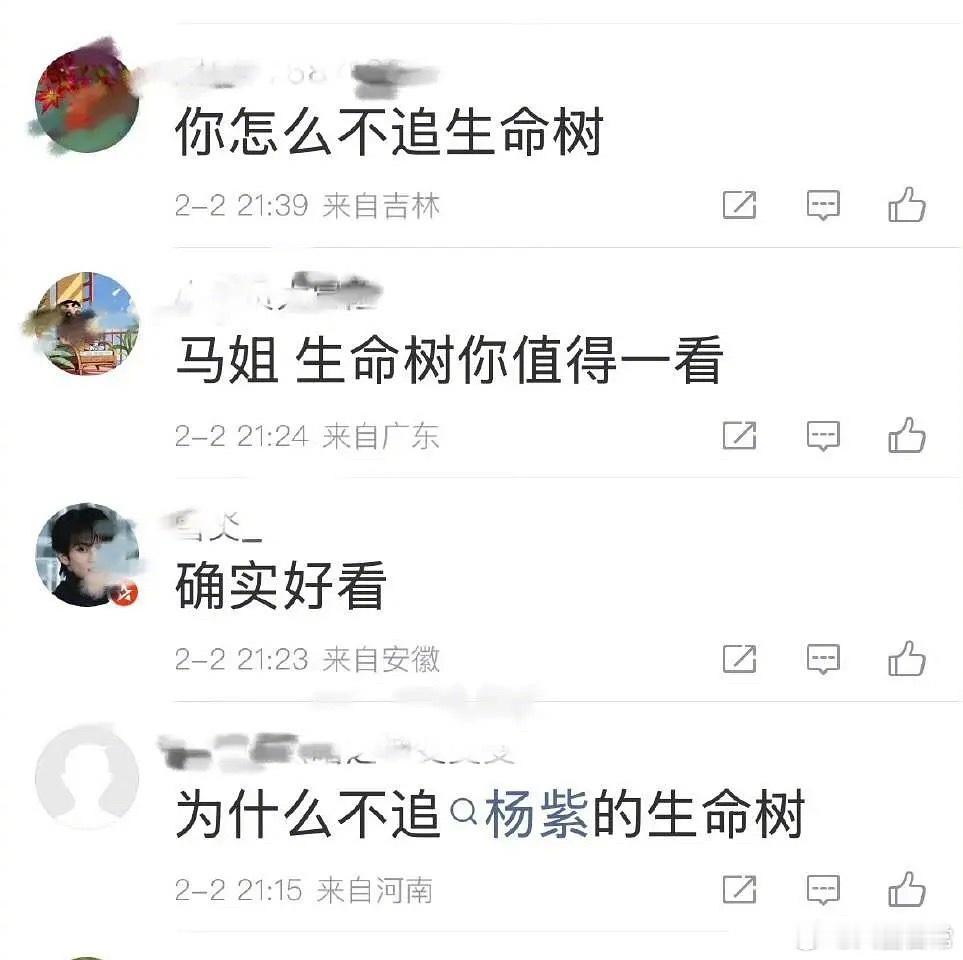 马思纯发微博说在追《太平年》,评论区问她为什么不追《生命树》