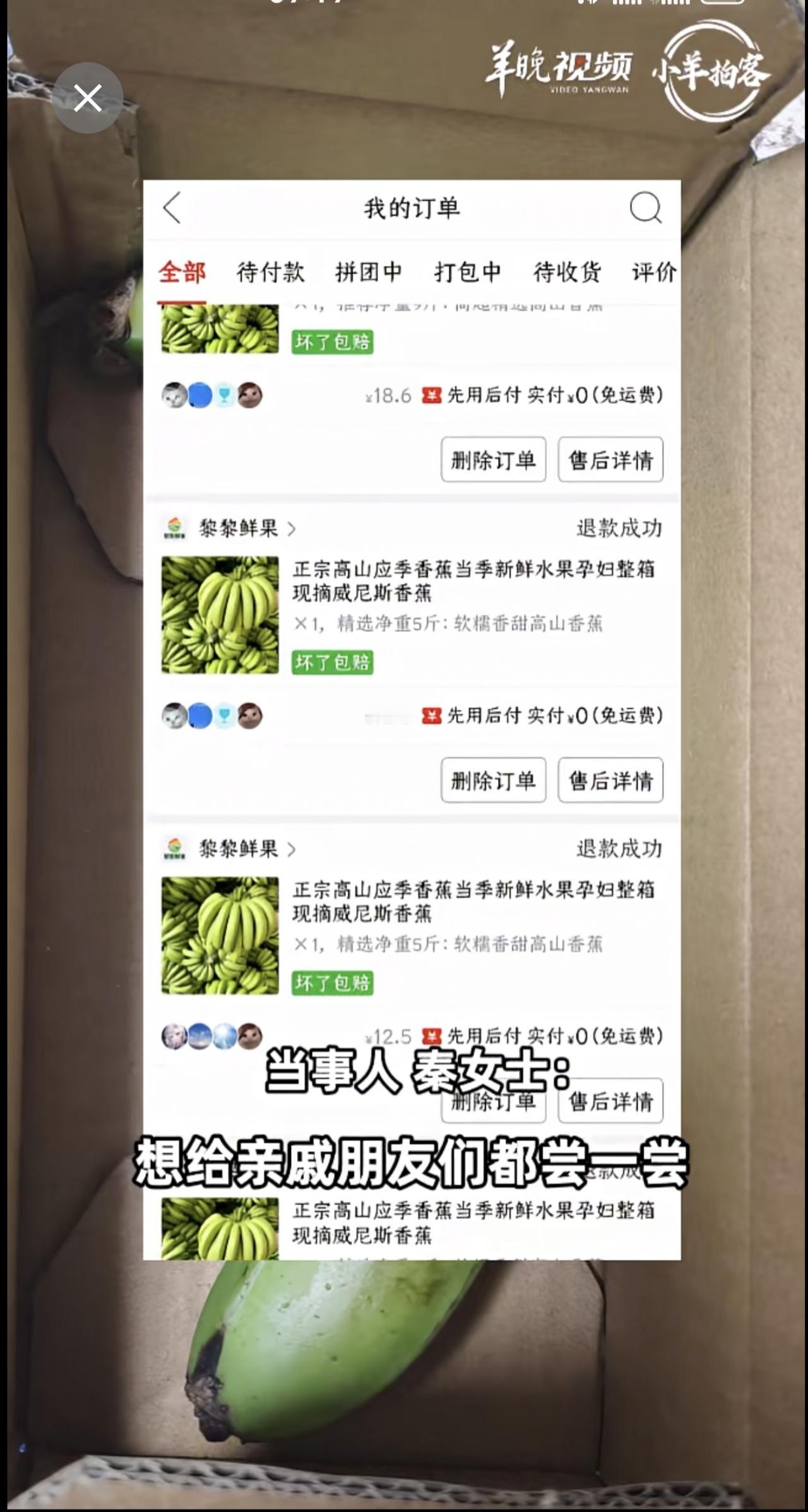 好尴尬!女子买9斤香蕉到货仅1根,还买了3单送亲戚全中招。平台:将处罚有违规行为