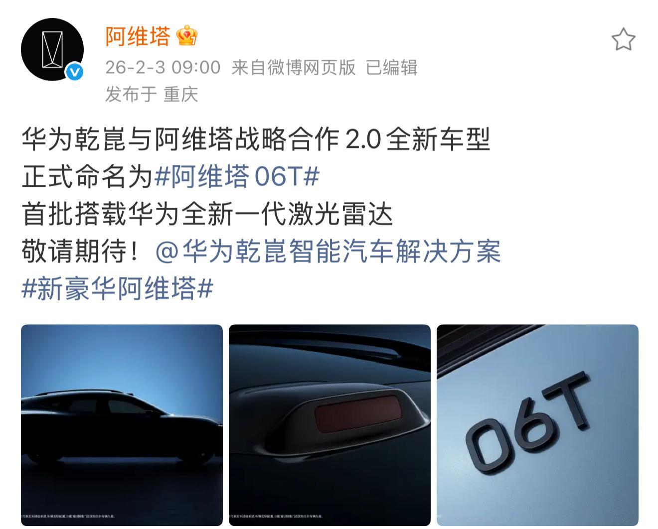 官宣:阿维塔06旅行车来了,首批搭载华为全新一代激光雷达。