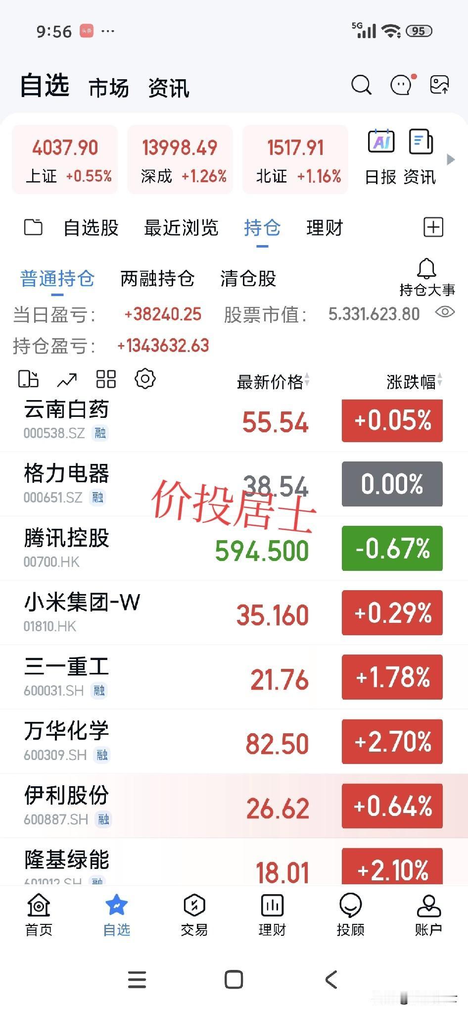 在牛市里就不能害怕急跌!越急跌越好,越这样越能更好的洗盘,为日后更好的上涨清洗掉犹豫的筹码! 我就觉得最近的调整挺好的,就是一场及时雨,如若不然,真的就此启动疯牛,最后倒霉的还是我们这些散户!谁要不信,可以参考下前几次我们的大牛市,最终散户在之前牛市里赚到钱的依然是少数! 所以我今年就看大盘到4500点就行,一步一个脚印的比较踏实,真要爆发疯牛,还真让人害怕[笑哭] 我就挺喜欢下跌的,没有闲钱补仓都挺好的[笑哭]这就是我的付出,这是我的因,我不着急果什么时候出现,该我的不会差我一分,不该我的我强求也没用[祈祷][祈祷][祈祷]