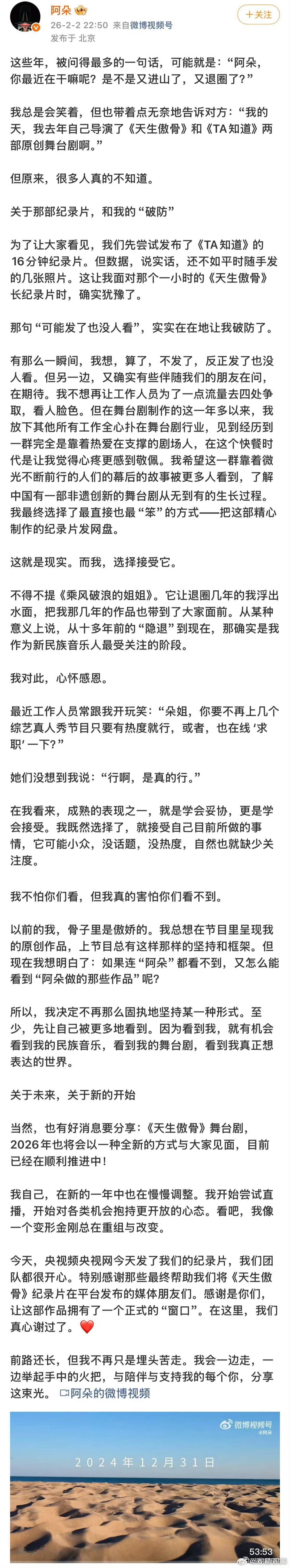 阿朵回应退圈传闻 看阿朵发文说总被问是不是又退圈了,能感觉到她的无奈。不过她说想通了,以后会多尝试直播和大家见面。期待看到她更多新的动态呀!