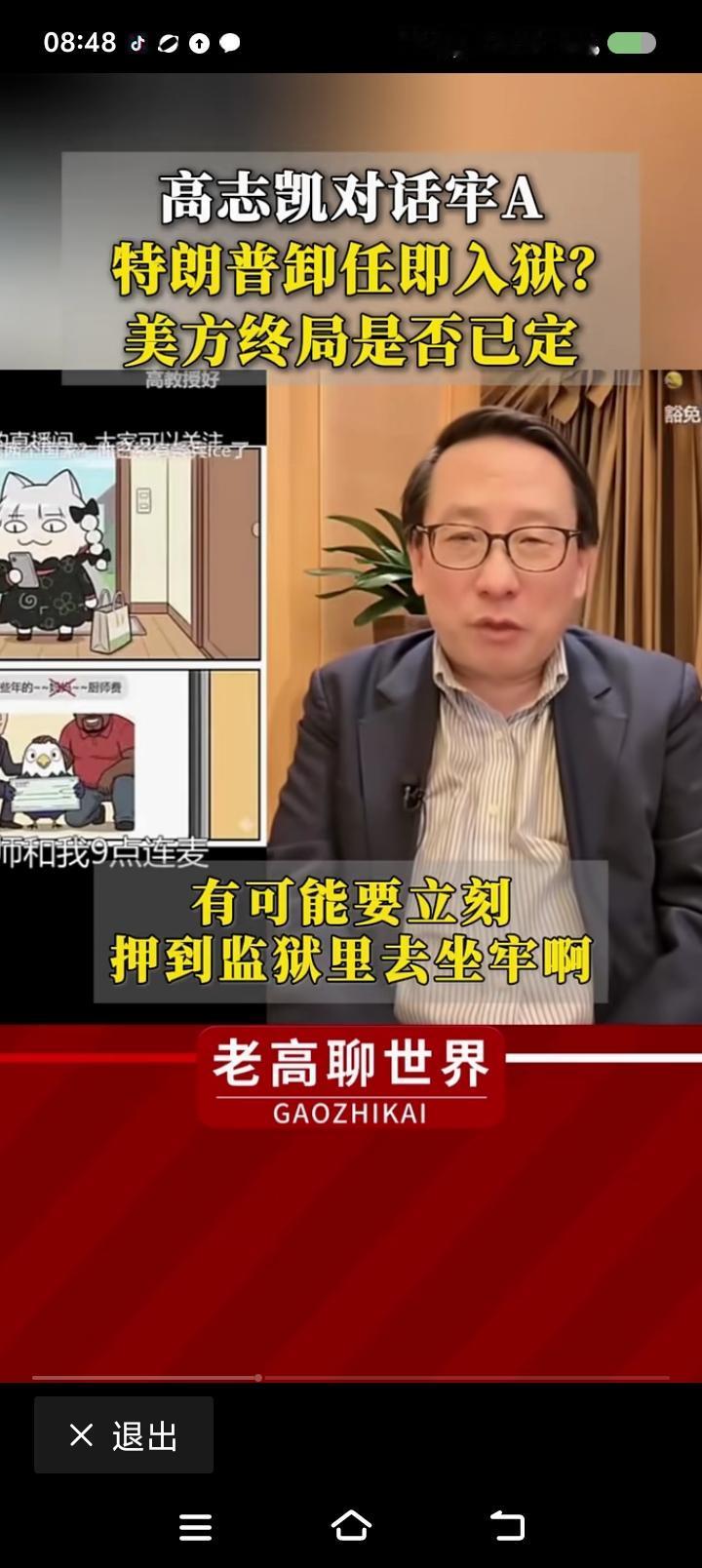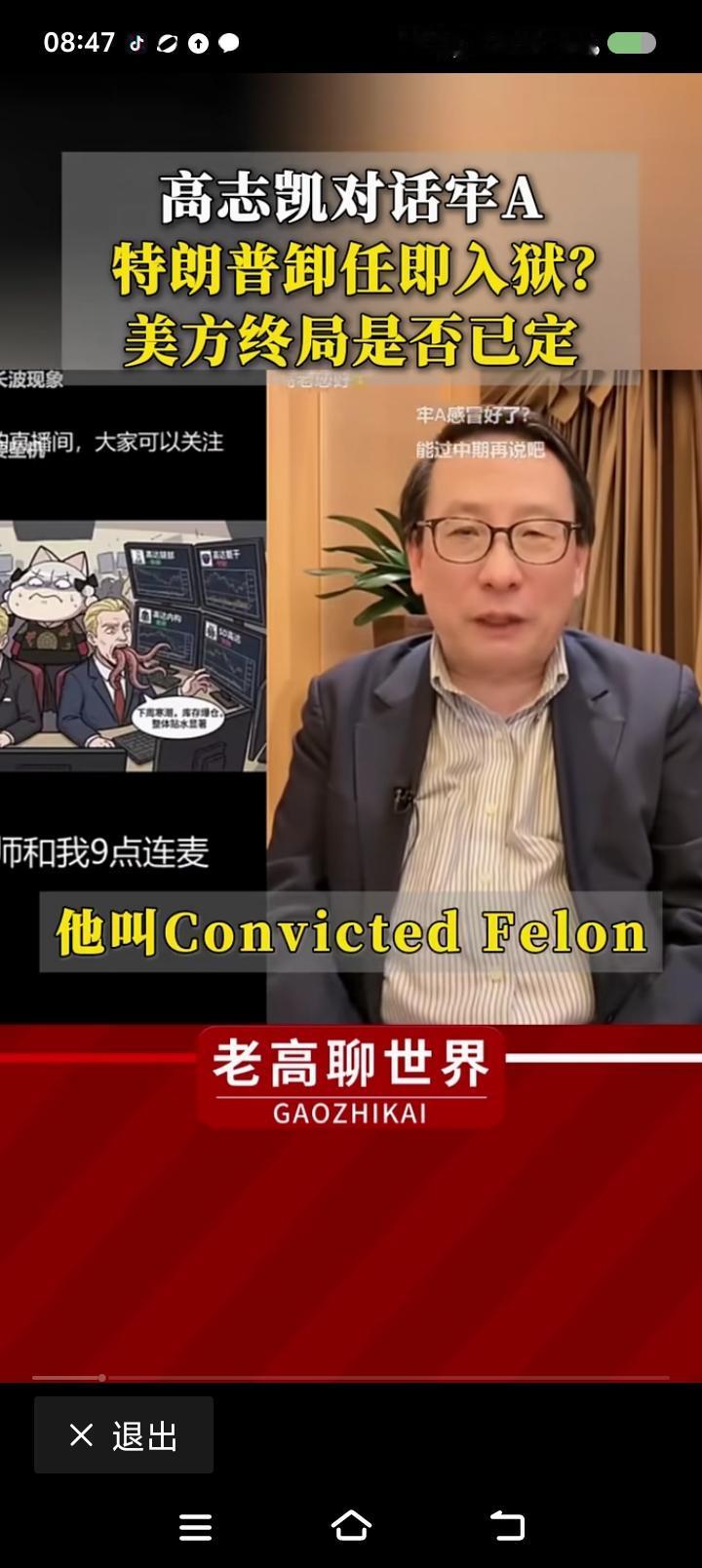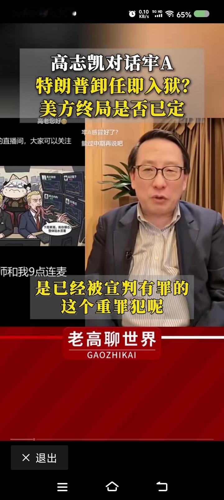 特朗普是戴罪上班?—— 网上视频:高志凯与牢A对话。高志凯说,特朗普当选前被判有罪,卸任后可能要去服刑。牢A问:“他会特赦自己吗?” 高说:“犯了州的法律,总统无权特赦。特朗普政府肯定会想办法保住特朗普,让其免受牢狱之灾。” 点评: 有人问,美国犯了法还能当选? 有人答,当选的哪个没问题? 我只能说,特朗普不在乎这些官司。