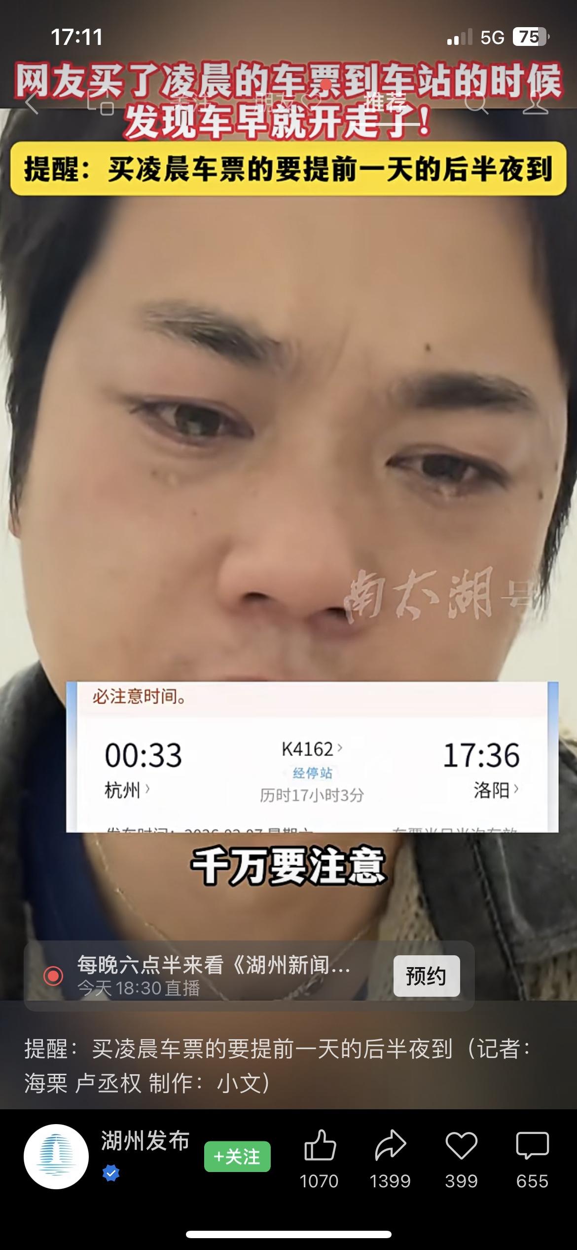 🚄买凌晨车票的注意了!当天到=错过车 网友买了30号00:33的票,30号半夜去车站,发现车早就开走了!铁路部门提醒:凌晨车票要提前一天的后半夜到,比如00:33的票,29号晚上就得去车站。 我闺蜜之前就踩过这个坑,买了1号凌晨的票,1号半夜去车站,结果车在1号凌晨已经走了,白白损失了车票钱。 🤔你有没有过买错车票时间的经历? 铁路出行 民生提醒