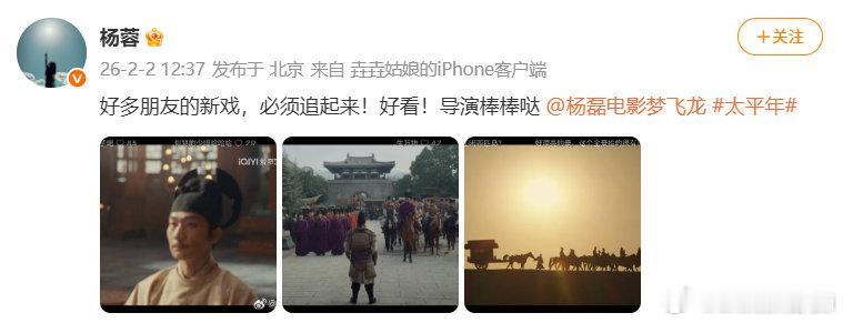 内娱18位艺人给太平年打call 年子这次简直鲨疯了!直接承包内娱艺人的追剧清单,陈妍希、王子文、马思纯、李沁、邓为、张云龙、陈数、王宏毅、杨蓉等18位艺人纷纷入坑打卡,这波排面直接拉满!能让那么多艺人集体沉浸式追更打卡,足见《太平年》的含金量,历史质感拉满的好剧果然自带吸引力的光环!还没入坑太平年 的快来加入追剧大军,这波神仙安利必须接住!