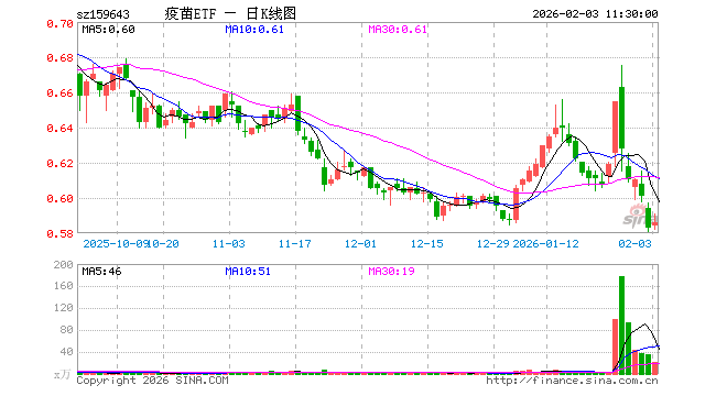 2月3日,截止午间收盘,疫苗ETF(159643)涨0.51%,报0.586元,成交额1262.01万元。疫苗ETF(159643)重仓股方面,复星医药截止午盘跌0.50%,长春高新涨0.51%,智飞生物涨0.71%,沃森生物涨0.82%,万泰生物涨0.31%,华兰生物涨0.46%,昭衍新药涨3.93%,丽珠集团涨0.03%,辽宁成大跌0.08%,康泰生物涨0.33%。