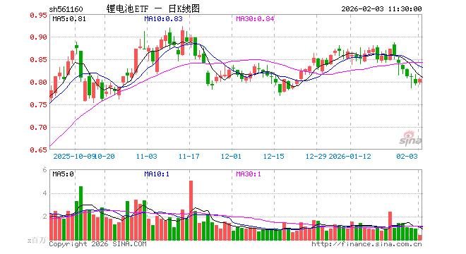 2月3日,截止午间收盘,锂电池ETF(561160)涨1.13%,报0.805元,成交额3164.08万元。锂电池ETF(561160)重仓股方面,宁德时代截止午盘跌1.04%,阳光电源跌0.17%,三花智控涨2.52%,亿纬锂能跌0.54%,天赐材料涨0.27%,先导智能涨5.78%,格林美涨1.07%,国轩高科涨0.08%,多氟多涨0.85%,欣旺达涨0.79%。