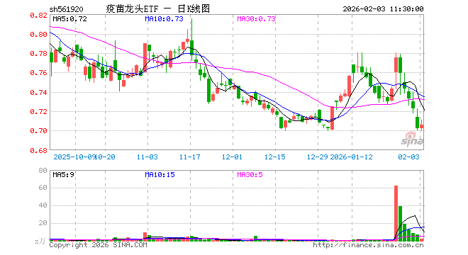 2月3日,截止午间收盘,疫苗龙头ETF(561920)涨0.57%,报0.706元,成交额135.19万元。疫苗龙头ETF(561920)重仓股方面,智飞生物截止午盘涨0.71%,沃森生物涨0.82%,万泰生物涨0.31%,辽宁成大跌0.08%,康泰生物涨0.33%,甘李药业涨0.73%,特宝生物涨0.12%,山东药玻涨0.40%,华兰生物涨0.46%,复星医药跌0.50%。