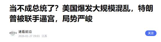 当不成总统了?全美50州爆发混乱,特朗普承认自己或将下台 2月1日的演讲上,他突然话锋一转,说要提前结束发言,理由是“得去看入侵格陵兰岛的计划”,这话一出口,当场就把在场观众和国际社会都整懵了。结果没等大家反应过来,他又火速改口,说这只是个玩笑,美国才不会入侵呢。 但话锋一转,又抛出更劲爆的说法:“我们要收购格陵兰岛,而且我从来没想过让它当第51州,因为加拿大才是第51州的首选,格陵兰岛顶多排第52。” 这波操作简直是把国际政治当成了过家家。要知道格陵兰岛是丹麦的自治领地,人家压根就没打算卖,更没兴趣当美国的“州”。特朗普倒好,先是威胁动武,再是强买强卖,还顺带把邻居加拿大也给惦记上了。 首府努克的居民托尼·雅各布森说得实在:“特朗普的话就是威胁,做好准备总比遭殃强。”另一位居民更是吐槽:“他把我们的国家比作冰块,简直是侮辱,现在特朗普本人就是最大的威胁。” 而这已经不是特朗普第一次玩“口是心非”的套路了。熟悉他的人都知道,只要他说“不想做什么”,那十有八九是在憋大招。 去年6月,他一边跟伊朗谈着核协议,一边偷偷策划了“午夜之锤”行动,出动125架飞机、7架B-2隐形轰炸机,朝着伊朗福尔多、纳坦兹、伊斯法罕三大核设施狂轰滥炸,光精确制导弹药就用了75枚,其中还包括14枚GBU-57巨型钻地弹。 为了这场空袭,美军飞行员更是挑战生理极限,37小时的任务中靠兴奋剂提神,用猫砂袋排泄,堪称“狼狈的霸权秀”。 可结果呢?伊朗早就提前疏散了核设施的人员和材料,美军费了5亿美元的天价,最后只炸出几个弹坑,连核设施的核心部分都没碰到。 伊朗反手就对美国驻卡塔尔的乌代德空军基地发射了19枚导弹,虽说大部分被拦截,但也让美军着实吓出一身冷汗。更打脸的是,以色列后来爆料,伊朗的浓缩铀根本没被转移,特朗普吹嘘的“彻底摧毁”纯属自欺欺人。 特朗普的移民政策搞得天怒人怨,移民与海关执法局(ICE)的过度执法引发了全民不满,58%的受访者都觉得这些执法行动“走得太远”。 从纽约到洛杉矶,从得克萨斯到密歇根,50个州的街头全是抗议人群,有人举着“停止暴力执法”的标语,有人高喊“特朗普下台”,部分地区还爆发了冲突,警方不得不动用催泪弹驱散人群。 更重要的是,他的支持率已经跌到了38%的冰点,创下本届任期以来的最低水平。之前引以为傲的移民议题,现在支持率只剩39%,就连独立选民都有六成不买他的账。 党内对他也越来越不满,不少共和党大佬已经开始私下物色“替代者”,毕竟没人想跟着他一起陪葬。特朗普自己也心知肚明,1月6日在众议院会议上就急吼吼地说:“必须赢得中期选举,不然我肯定会被弹劾。 ”这话与其说是警告,不如说是认怂——连他自己都知道,再这么折腾下去,总统宝座怕是坐不稳了。更重要的是,他惦记着把加拿大变成第51州的美梦,也早就碎得稀里哗啦。 美国官员偷偷接触加拿大的分离主义团体“艾伯塔繁荣计划”,还想给对方提供5000亿美元信贷支持,结果人家分离组织都明确表示“不想加入美国”。益普索民调显示,加拿大支持独立的比例只有29%,一提到经济困难,支持率直接腰斩。 加拿大各省省长更是集体炮轰,安大略省省长道格·福特直言:“特朗普觊觎加拿大,但这绝无可能实现。” 说到底,特朗普的这套“反向操作”,本质上就是想靠制造外部矛盾,转嫁国内的执政危机。 可霸权主义的老路子早就行不通了,如今的世界早已不是美国一家独大的时代,他越是动辄威胁动武、出尔反尔,越是会让美国陷入孤立。国内的混乱也好,国际上的碰壁也罢,都是他咎由自取的结果。 现在的特朗普,就像个输红了眼的赌徒,一边面临下台风险,一边还在硬撑。 接下来的几个月,他大概率还会搞出更多疯狂的操作,要么继续在伊朗问题上挑衅,要么在国内搞极端政策试图挽回支持率。但从目前的局势来看,他的“反向政治”已经失灵,全美50州的混乱和持续下滑的支持率,都在预示着他的政治生涯即将走到尽头。 毕竟,再能忽悠的谎言,也经不起事实的检验;再霸道的行径,也挡不住人心的向背。特朗普要是还不收敛那套口是心非的把戏,最终只会落得“搬起石头砸自己的脚”的下场,而美国也会在他的折腾下,继续陷入分裂和混乱的泥潭里无法自拔。至于他能不能保住总统宝座,恐怕就连他自己,心里也没底了。