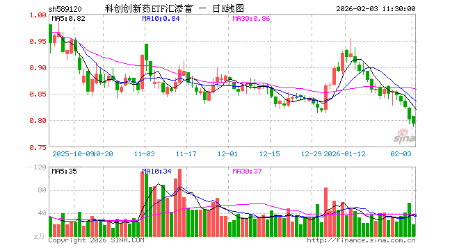 2月3日,截止午间收盘,科创创新药ETF汇添富(589120)跌1.12%,报0.793元,成交额1597.81万元。科创创新药ETF汇添富(589120)重仓股方面,百济神州截止午盘涨0.51%,艾力斯跌0.07%,百利天恒跌2.28%,君实生物涨0.72%,泽璟制药跌1.86%,博瑞医药涨2.00%,荣昌生物涨1.01%,特宝生物涨0.12%,益方生物跌4.21%,皓元医药跌0.38%。