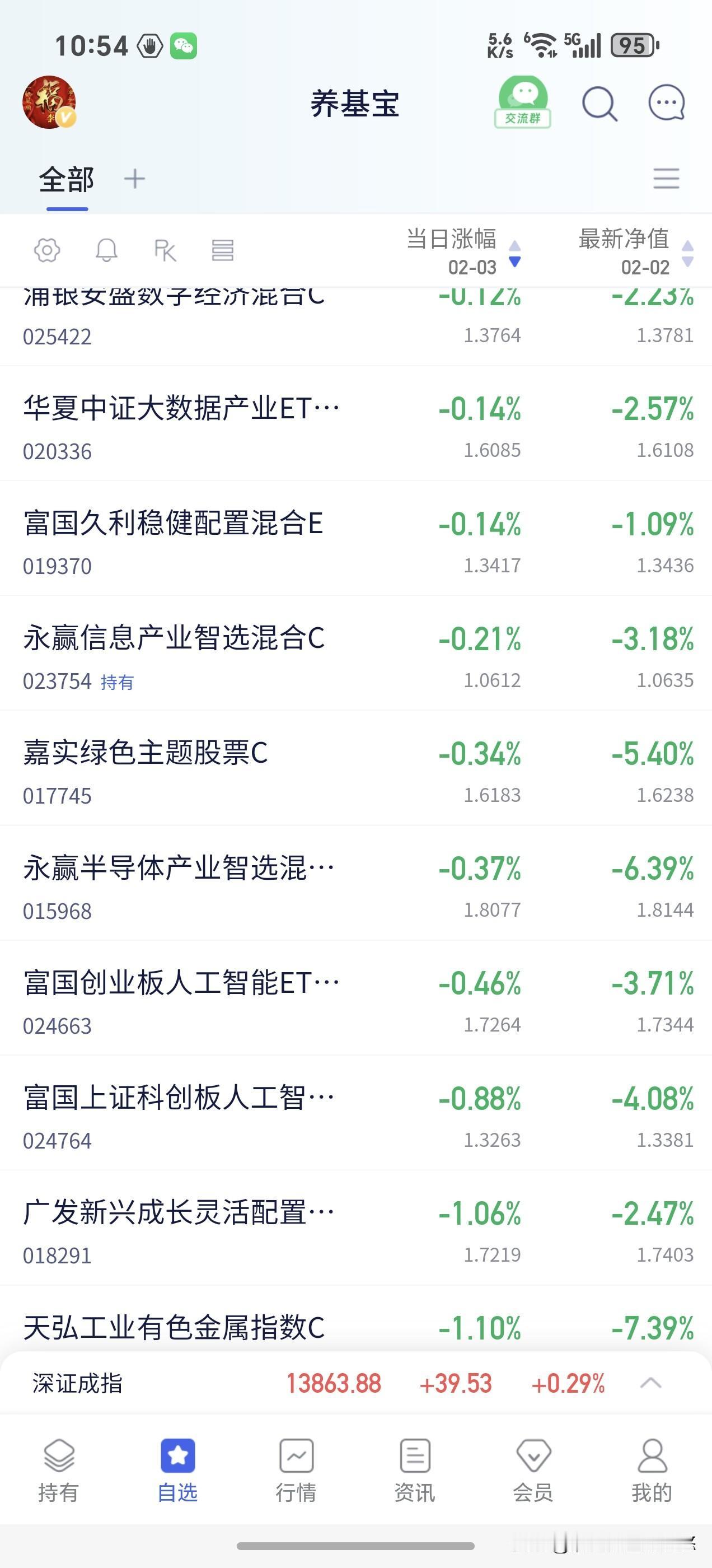 2月3日午间看盘,10点半大盘又开始开始跳水啦,今天早盘三大股指高开,但是又玩老一套冲高回落,以为今天是普反行情,又高看它了。 存储芯片如同前面所说,只要美股存储芯片大涨,这边基本上都是高开低走,先锋盘中一度涨3%,目前还有0.6%,大盘不配合它敢绿色收盘! 盘面上,光伏等新能源板块涨幅居前,军工与商业航天紧跟其后,可控核聚变,存储芯片与半导体材料设备,动漫游戏,人形机器人,电网设备等板块涨幅居前。 人工智能,科创50,有色金属,消费电子,证券等多数板块下跌。 主力资金流入比较多的板块有航天航空,光伏设备,船舶制造,光学光电,卫星互联网等。 主力资金流出比较大的板块有 算力,黄金,有色金属与资源,半导体证券,消费电子等。 截止时间11点,两市成交额1.4万亿元,比昨天萎缩亿700元,主力资金流出135亿元。 机器人还没有调整到位,现在是硬扛。ai应用基金大多数翻绿。cpo基金不跟指数。看看下午能不能稳住。 点赞转发评论关注,投资理财不迷路。