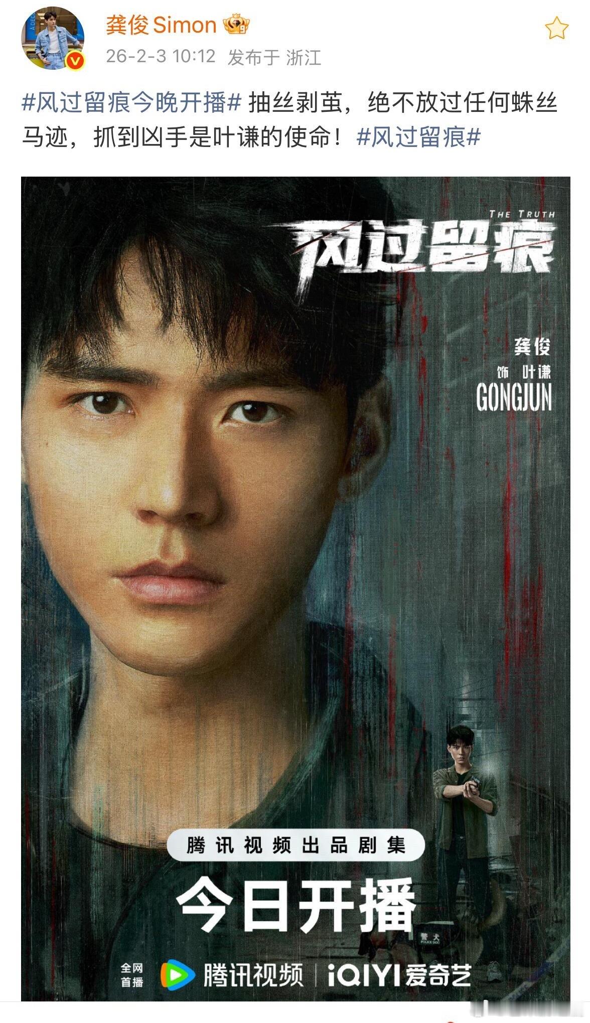 强强联合!刘宇宁给龚俊新剧《风过留痕》唱了ost《荣光》