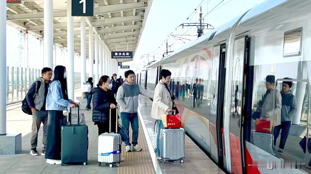 2月2日2026年春运正式开启,南沙北站也迎来了改造改名后的首个春运! 车站数据显示,2月1日,南沙北站发送旅客4731人,到达旅客4356人,单日到发总量达9087人次,成为调图后客流最高的一天。 近一周车站日均到发客流约7418人次,较调图前增长约30%至35%,主要流向包括湖南、深圳及香港等地。 春运首日,车站到发客流预计较去年同期增长约35%。 据悉,自1月26日列车运行图调整优化后,南沙北站每日开行动车组列车已增至55至59趟,较此前近乎翻倍,极大便利了广深港之间的通勤出行。 此次调图后,南沙北站新增了直达成都、张家界、武汉等热门旅游目的地和中部枢纽城市的高铁列车,旅客无需再辗转前往广州南站中转,真正实现了从“家门口”出发就能抵达旅游地。