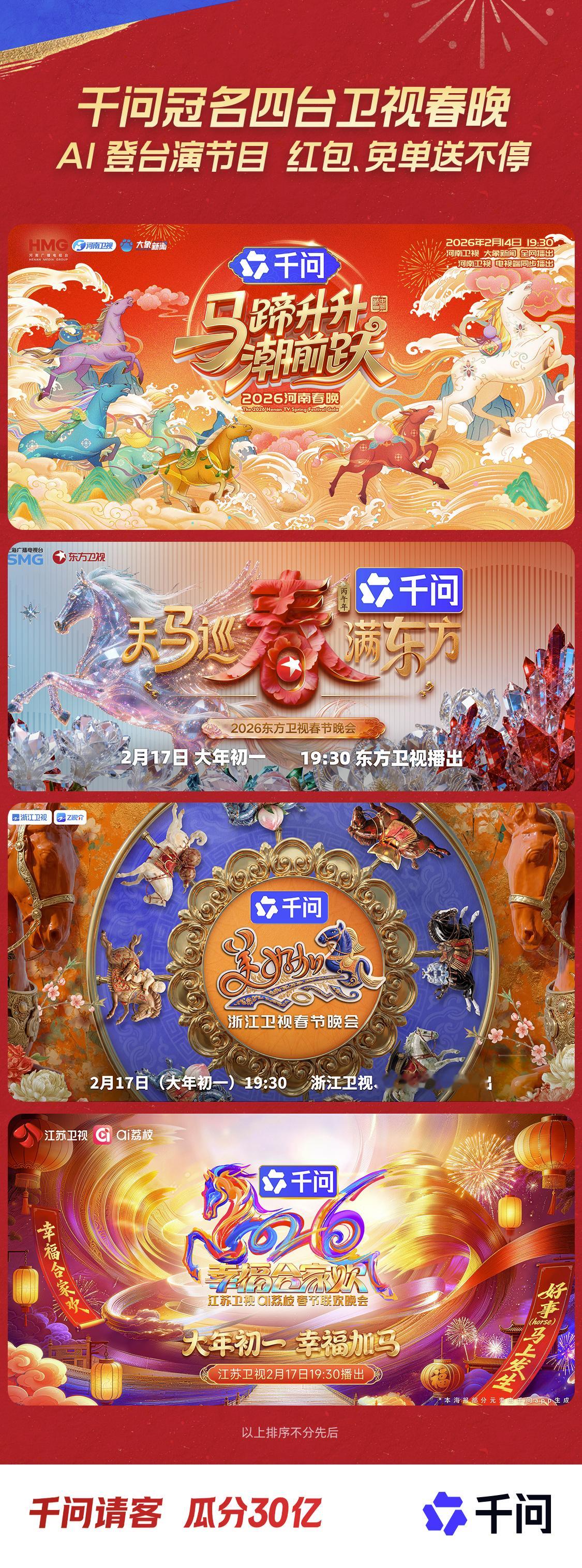 千问独家冠名4台卫视春晚好家伙,这手30亿+四大春晚冠名,明摆着把全国人民摁在春节饭桌上完成AI购物初体验。边看晚会边抢红包,抢完顺手订酒店买票(等反应过来,已经习惯使唤AI了吧)2026开局就整场景强攻,后面还有的看呢