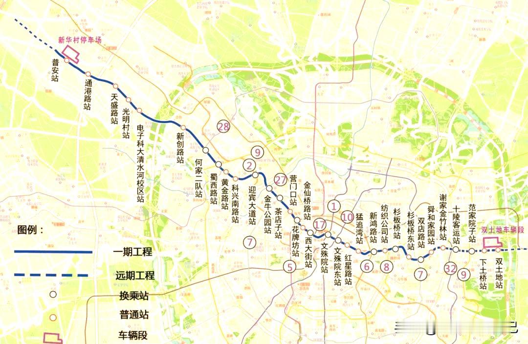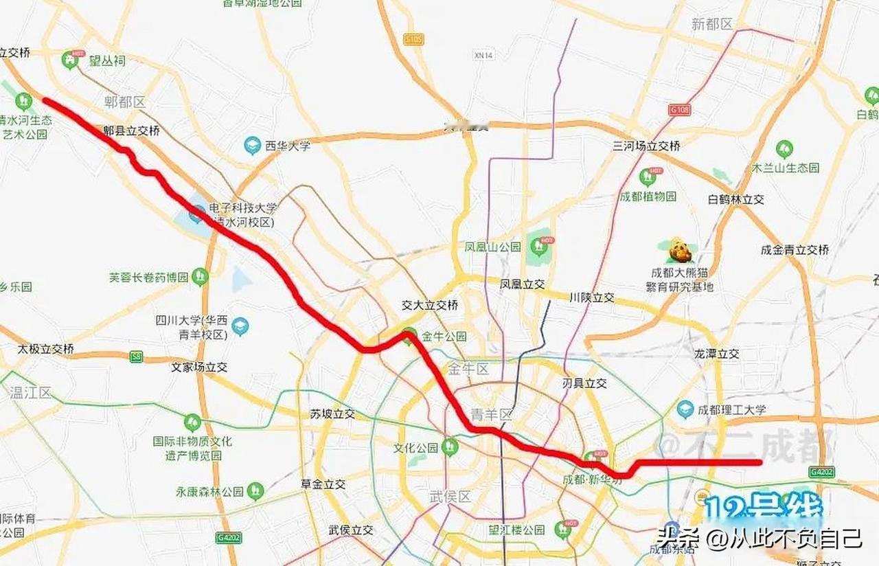 成都地铁第五期最稳的线路,开工箭在弦上! 成都地铁五期线路中最稳线路绝对是12号线,这是五期线路中长度最长,份量最重,经过的城区最多的线路,虽然只是一期工程,12号线却串联起了郫都区(高新西区)、金牛区、青羊区、锦江区、成华区。 这条东西大致走向的线路所经区域都是发展成熟的城区,沿线人口大多分布密集,是成都又一条客流大线,所以备受关注,也才优先开工建设! 目前,12号线一期工程已全线拉开地勘工作,相信2026年上半年即将开工建设! 遗憾的是,本期工程砍掉了龙泉驿那段,只希望纳入二期规划了!