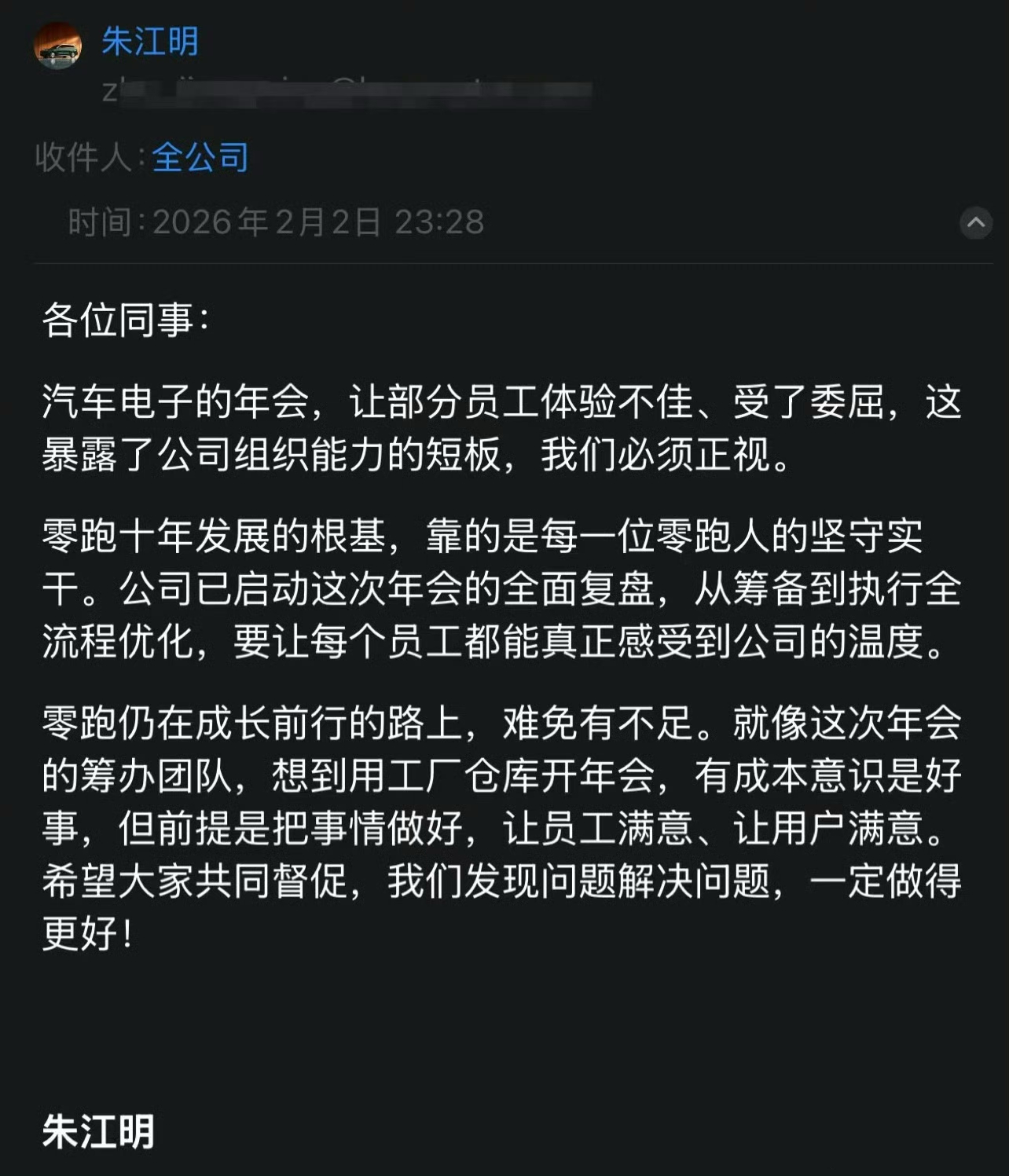 零跑这波算拎得清,年会仓库办被吐槽,但确实没顾到员工感受,不过回应快还诚恳,而且