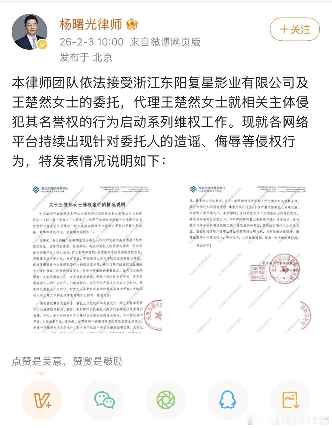 王楚然方发布告嘿声明,出道至今的首次告嘿👊🏻