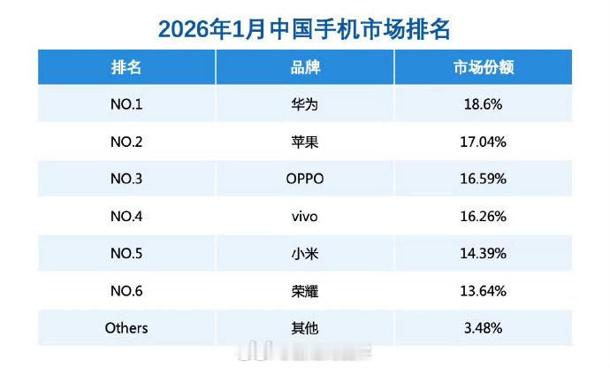 【华为手机1月中国销量份额第一】根据权威机构公布的第三方销量数据,华为领跑新年手机市场,拿到1月份中国手机市场份额第一名,市场份额提升至18.6%。其中Mate 80标准版需求量最为旺盛,单品激活量突破150万台,这是去年下半年国产新旗舰中单品销量最高的机型。