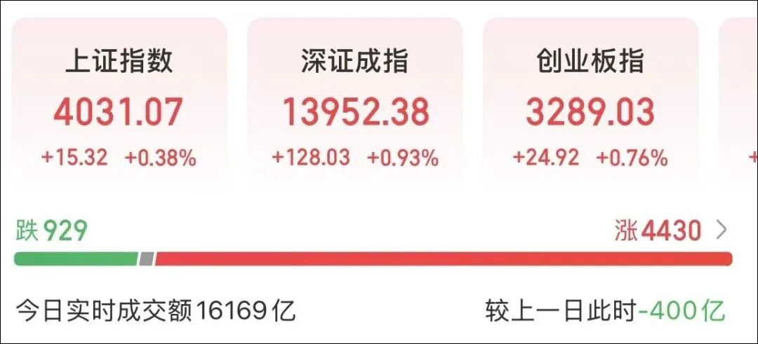 2月3日,A股市场早盘冲高回落后,又再度震荡拉升。三大指数盘中翻绿,创业板指此前一度涨超2%,截至午间收盘,三大指数集体翻红。沪深两市半日成交额1.6万亿,较上个交易日缩量400亿,全市场超4400只个股上涨。