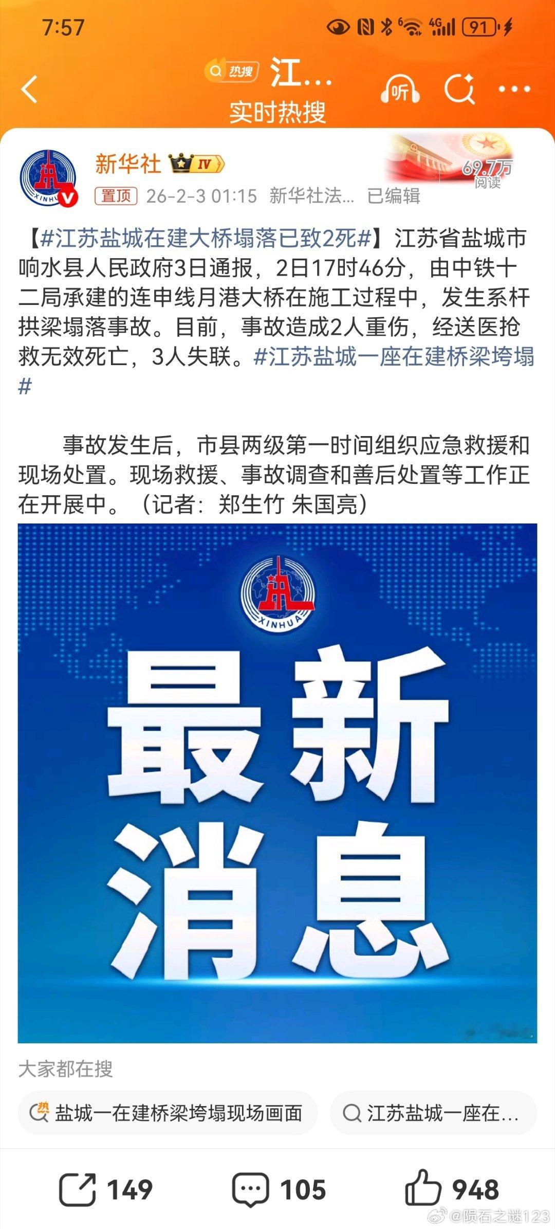 江苏盐城在建大桥塌落已致2死真是不幸中的万幸,要是建成通车之后问题才暴露出来,后
