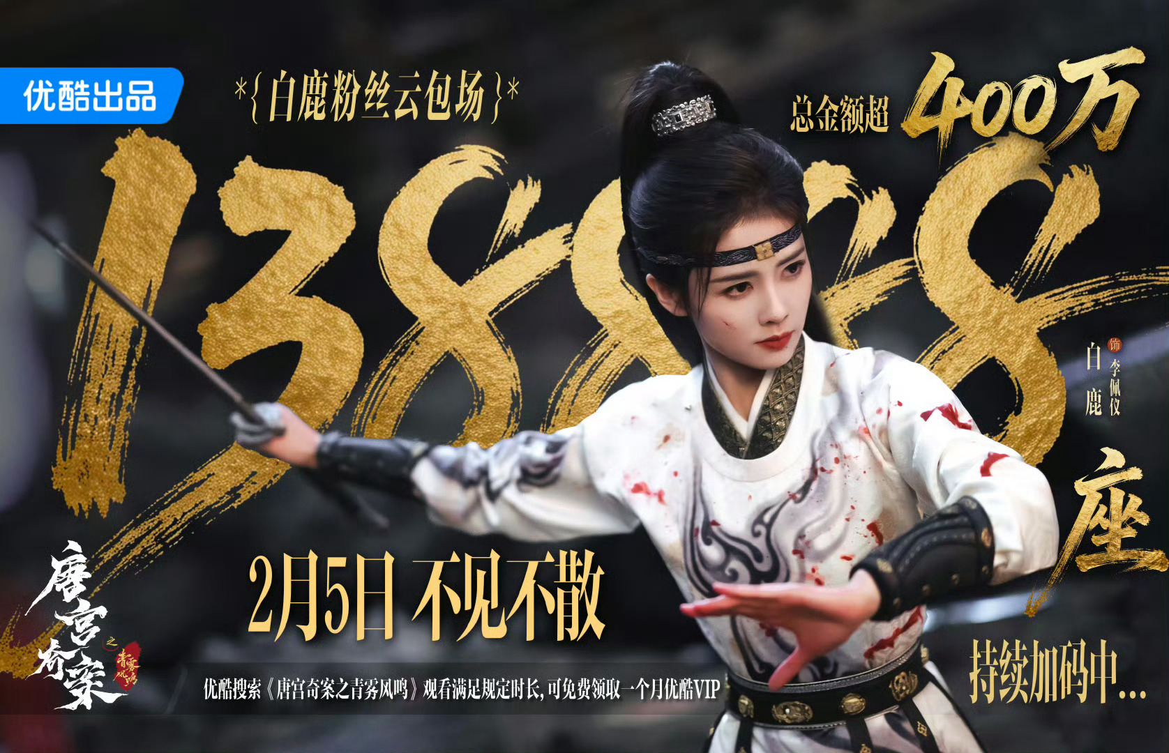 现在,《唐宫奇案》即将开播,这是2026年,白鹿播的第一部剧,也是我从去年期待到今年的作品, 不论是白鹿李佩仪的人设,还是李佩仪所指向的高度,我都满心期待,开年,市场需要这样一部剧来提振士气,交给白鹿,是最佳选择,开播见,我们一起恭迎县主!