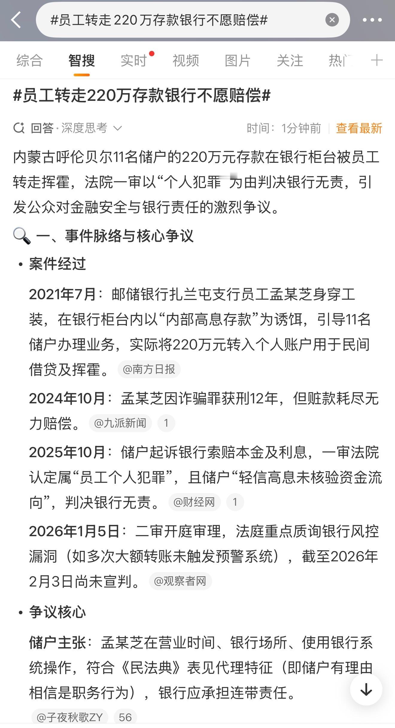 员工转走220万存款银行不愿赔偿怎么现在还有这种离谱的事,没有身份证原件 没有人脸识别 没有密码,钱没了,最关键的是起诉后一审竟然没有让银行负责。。。。