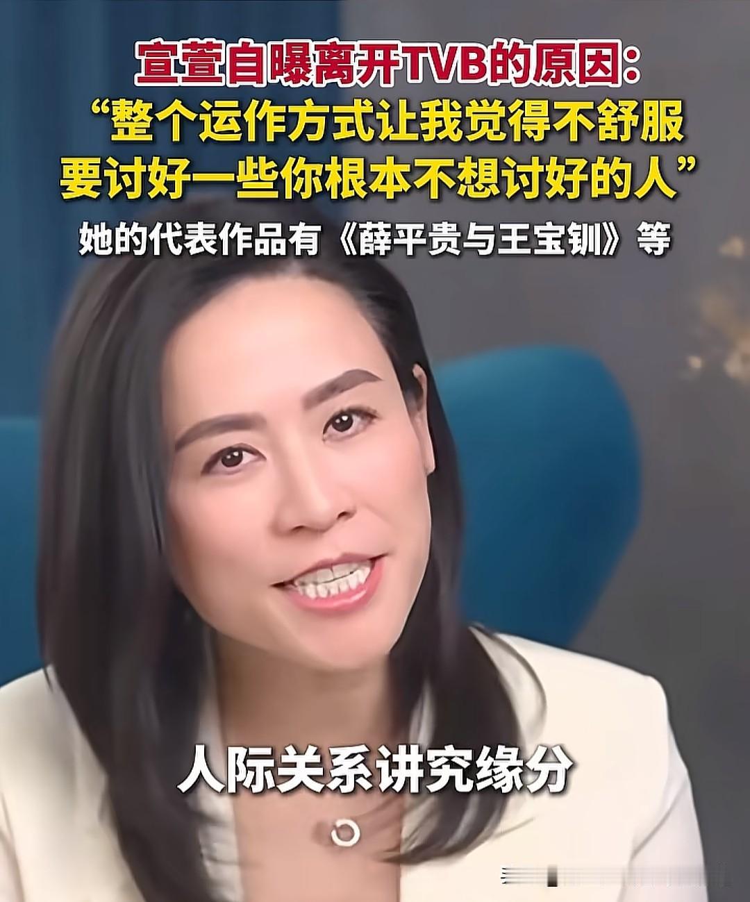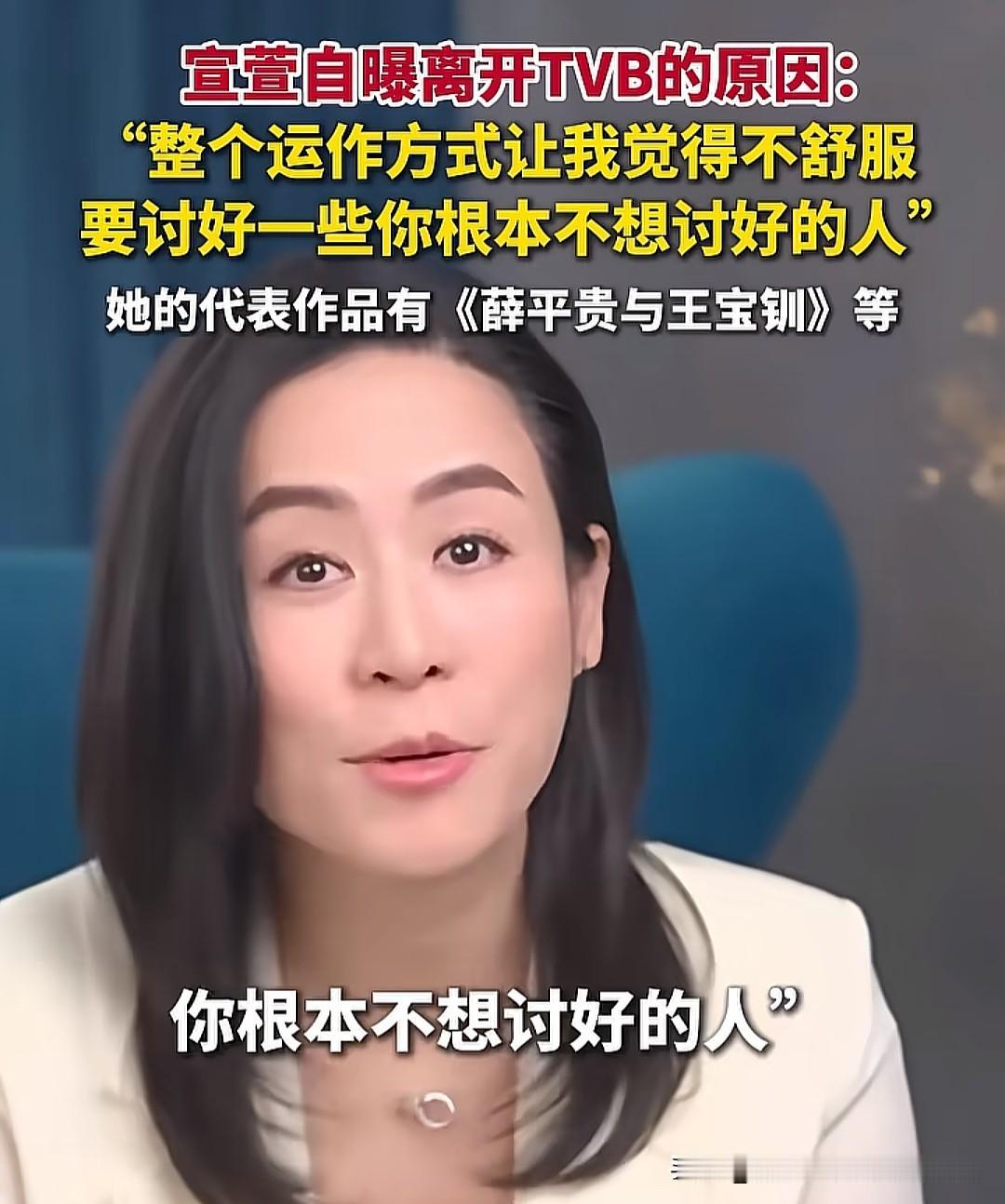 演员、主持人宣萱离开TVB的原因原来是这个!她不喜欢讨好别人,人际关系要讲缘分,没缘分还要讨好就纯属浪费时间的生命了。能做到不用去讨好任何人、虚情假意做任何事,这样人生会洒脱点、自在点,这才是性情中人呀! 像宣萱这样有才能的艺人,很难融入业内的运作方式,而且她的工作能力和观众缘基本好于佘诗曼,佘诗曼早期争议很大,走到今天离不开她的情商高,能上能下。宣萱要是也这样,估计她会很讨厌现在的自己。 为什么很多公司会盛极而衰呢?庸才外行管理内行,人际关系的权力,还有那些高高在上的爷等等,山头文化流失了大量的人才。如果任何一个组织不自查,最后都走向衰败。