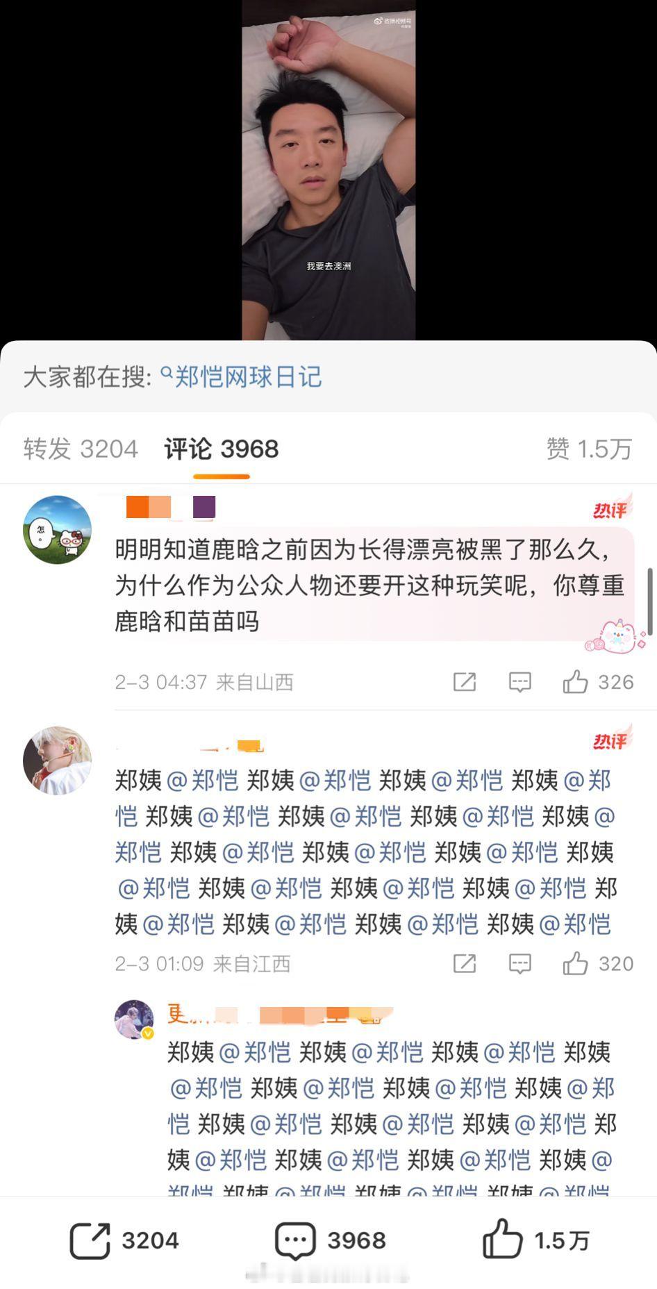 郑恺和苗苗发日常视频,有人问那个女人是谁,郑恺说是鹿晗(其实是苗苗)。现在粉丝跑去评论区要他道歉