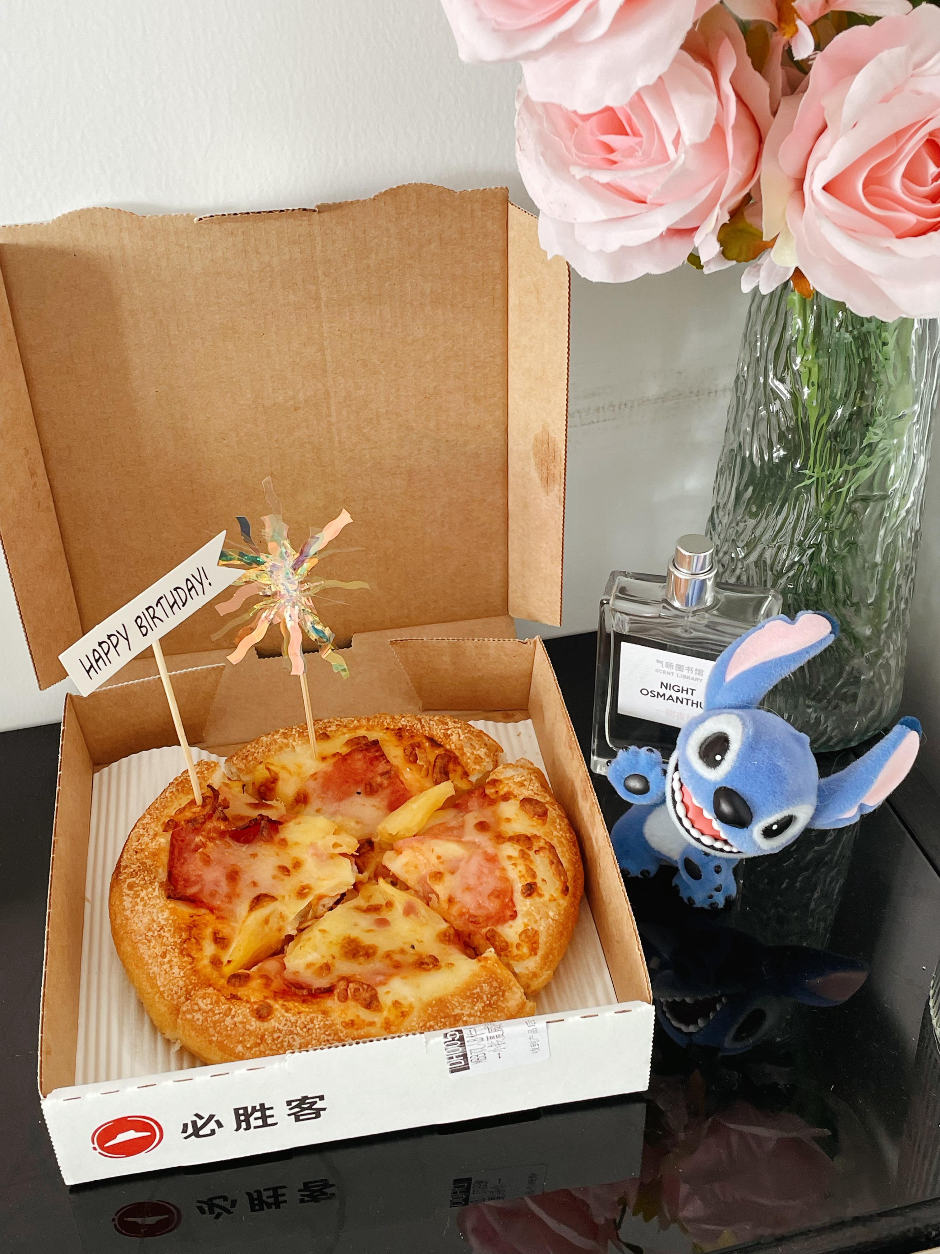 王安宇粉丝带火的必胜客披萨蛋糕俺真的敢说简直是生日餐桌的救星!听说他生日粉丝就这么庆祝,这不撞枪口上了,搓搓手立马跟风尝试。不过必胜客离我家远了点,只好点了个外卖👉🏻👈🏻选了个夏威夷风情披萨做底,菠萝和芝士的融合,咸香适口,完全不会腻!而且加上自己DIY的椒麻小酥肉,谁说生日就要吃甜蛋糕,披萨满满,福气满满~