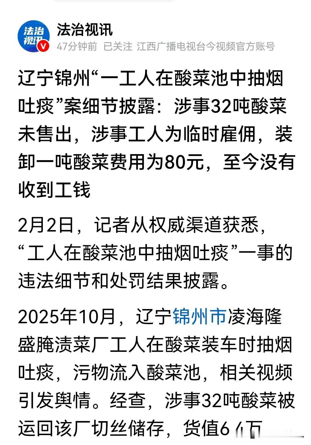 健康之路,心怀感恩,笑看人生——一碗酸菜的启示录 在辽阔的锦州大地上,有一段令人唏嘘的故事,也是一堂生动的健康课。故事的主角是一家普通的腌菜厂工人,他一边抽烟,一边吐痰,污浊之物竟然混入了酸菜池中。如此“肆意妄为”的行为,令人扼腕叹息,也让人深思:真正的健康,既要外调养,更要内修炼。 事情发生时,32吨酸菜被运回厂里,经过切丝、装桶,价值六万四千多元。然而,一幕令人震惊的画面被拍下:工人在装车时,口中烟雾缭绕,吐痰污浊,竟然直接流入酸菜池。这不仅是对食品安全的极大亵渎,更是对生命健康的漠视。网友们纷纷发声:“这样的酸菜还能吃吗?”“健康是金,安全是魂,不能为了利益而丢掉良心。” 事情曝光后,相关部门迅速查处,酸菜被封存,厂老板被罚款百万元。这场“正义之战”彰显了法律的威严,也提醒我们:健康无小事,食品安全更关乎全民的生命质量。正所谓“防微杜渐,细节决定成败”,我们应从点滴做起,珍惜每一份健康。 健康,不仅仅是身体的强壮,更是内外双调的和谐。内在的心怀感恩,能让我们心境平和,远离焦虑;外在的生活习惯,决定了我们的身体状态。就像那碗酸菜,若用心呵护,才能散发出自然的香气;若心存感恩,才能品味到生活的美好。 正能量如春风化雨,滋养心田。我们要用一颗感恩的心去面对生活的每一个细节,用科学的方式守护健康。毕竟,真正的健康,是心灵的平静,是身体的强健,更是对生命的尊重和热爱。 让我们从这碗酸菜的故事中汲取教训:无论何时何地,健康都应放在第一位。用心去生活,用爱去呵护,才能拥有一个更加美好的未来。记住,健康是一种责任,更是一份礼物。让我们携手同行,走在健康的阳光大道上,迎接每一个充满希望的明天! 对健康的认识