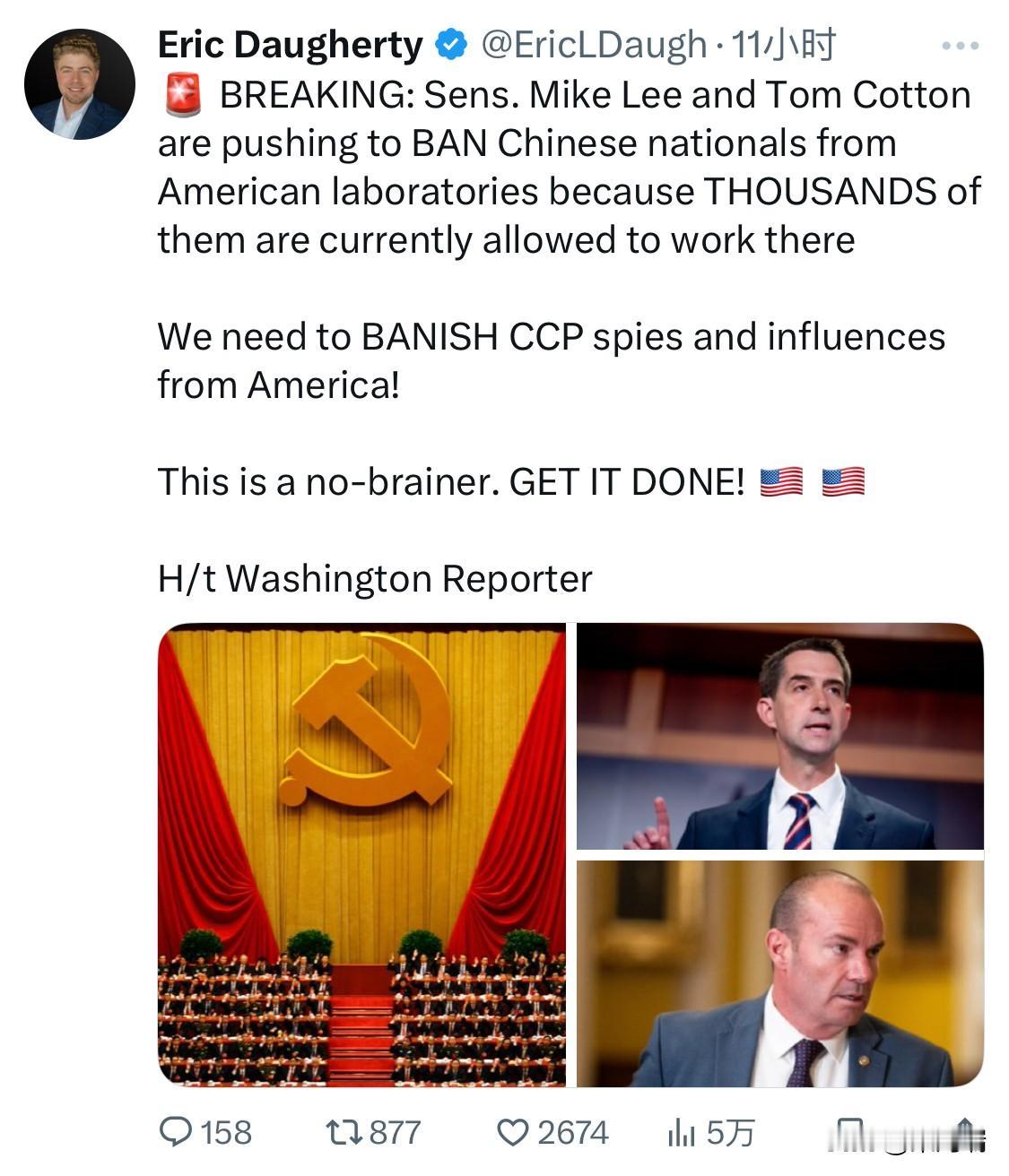2026年1月,由参议员汤姆·科顿(Tom Cotton)和迈克·李(Mike Lee)领导的11名共和党参议员正式要求美国能源部禁止中国公民进入美国国家实验室工作。 2026年1月13日,科顿和李联名致信能源部长克里斯·赖特(Chris Wright),敦促其颁布政策,完全禁止中国公民接触任何国家实验室的场所、信息或技术。 针对核心项目“创世纪任务”:参议员们表示,这一举措是为了保护美国在人工智能(AI)领域的领先地位。他们认为,允许中国公民参与能源部旨在加速AI研发的“创世纪任务”(Genesis Mission)会危及国家安全。 根据参议员引用的数据,仅在2024财年就有约3,200名中国公民获准进入国家实验室工作(该数字不包括拥有绿卡的永久居民)。 立法支持:除了致信行政部门,科顿和李此前还共同发起了《2025年防止美国技术被剥削法案》(GATE Act of 2025,即 S.929),旨在通过法律手段禁止特定敌对国家公民进入国家实验室,除非获得个案豁免。 参议员们主张,由于中国的国家安全法律可能强制其公民配合情报工作,因此仅靠现有的背景调查不足以消除风险。该提议一旦实施,将对在美从事科研工作的中国籍研究人员产生重大影响。