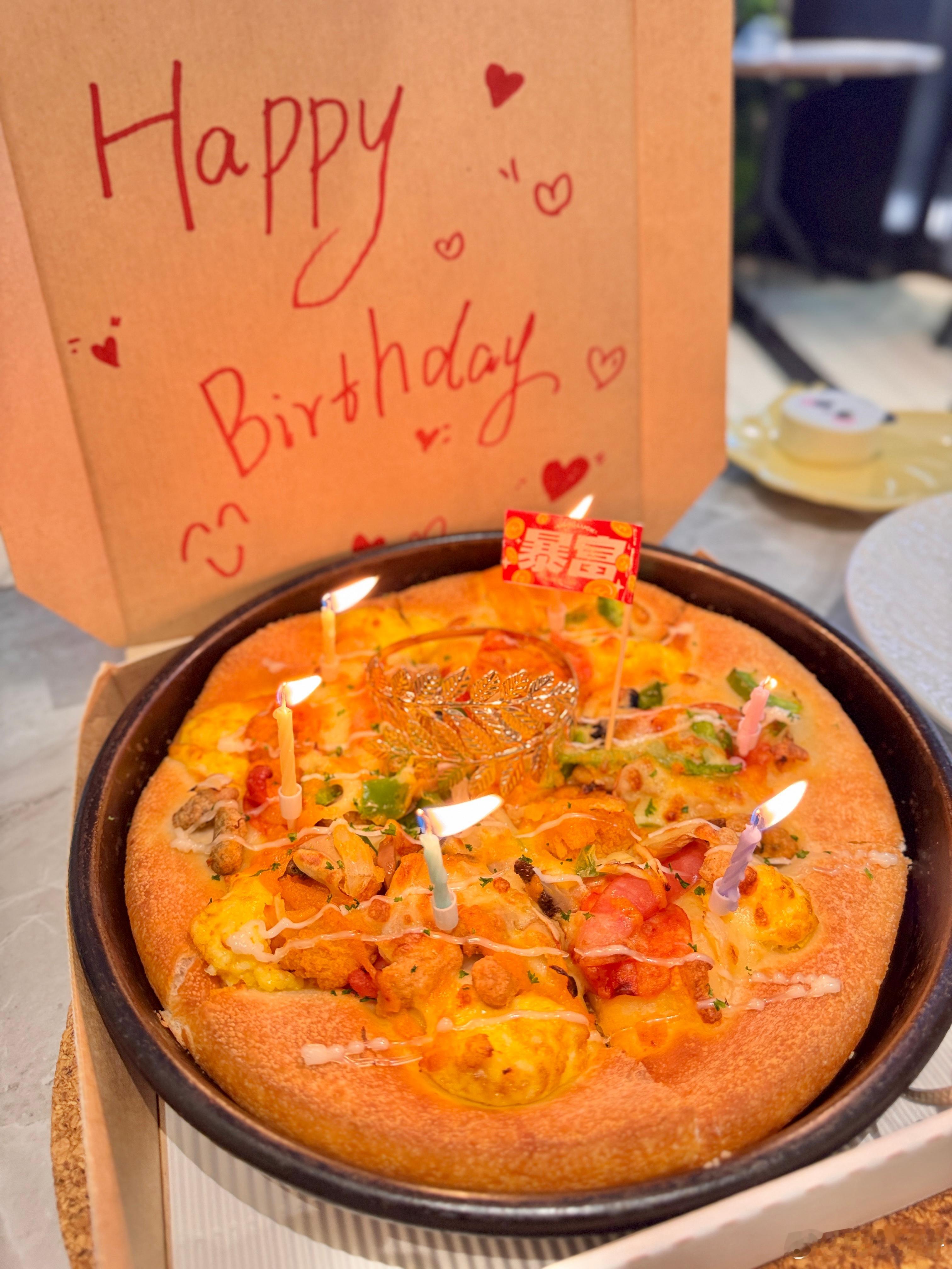 用披萨蛋糕打开我新的一岁 论玄学还要看年轻人❗️这不眼瞅着高考了吗?生日蛋糕也不要奶油的了,改芝士版啦!这块王安宇粉丝为偶像庆生🎉,带🔥火的🍕“必胜披萨蛋糕”🍰好有趣。美味加好运都是新鲜出炉的!每一口都是必胜的喜悦😀!而且用披萨DIY蛋糕好有趣呀!料多多的披萨自带节日氛围感,再插上蜡烛,点缀上装饰品,还可以在盒子上写多多的祝福语妥妥的高配版生日蛋糕!人多的话可以把大小不同的披萨叠起来,做成多层🍕披萨蛋糕,关键是价格低,一个普通8寸蛋糕都要100多,同样价格在必胜客能点到一大桌!花小钱办大事!打工人闭眼冲!