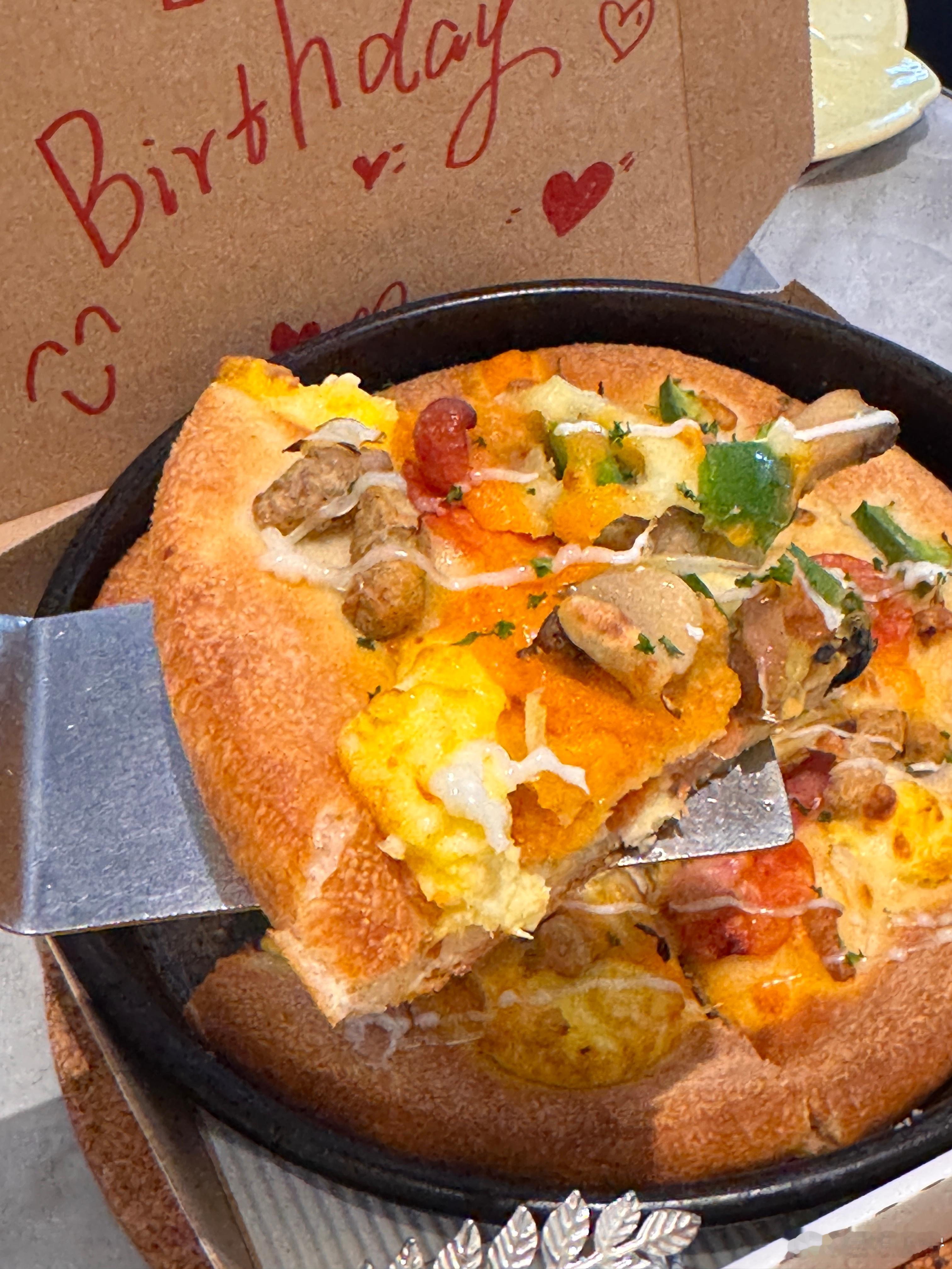 我决定了以后朋友庆生!团建活动!就来必胜客,必胜客披萨蛋糕绝对是万能庆祝神器!咸香不腻花样还多,氛围感直接拉满!以后举杯🍻也不要喊干杯!咱就喊: