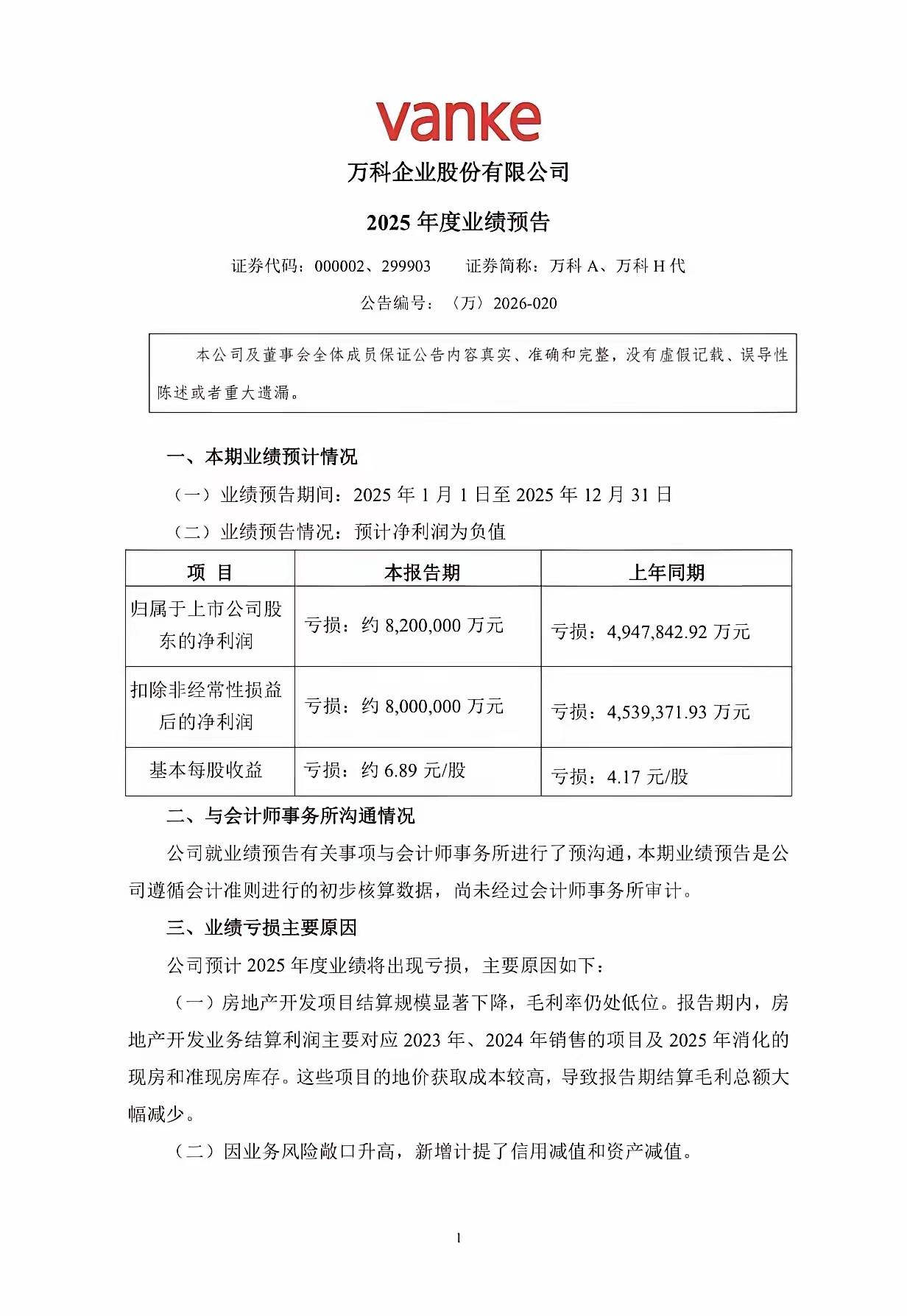 万科2025年亏损高达820亿,深圳方面的上千亿两年就亏完了? 2024年万