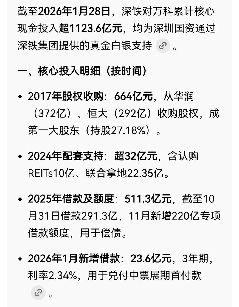 万科2025年亏损高达820亿,深圳方面的上千亿两年就亏完了? 2024年万科亏损高达498亿元,加上2025年亏损的820亿,两年总亏损超过1300亿。 长期以来,深圳方面都很支持万科,以深地铁为主力的深圳地方国企,这些年来对万科的投入累计超过1100亿元。 光2025年一年,深地铁就借给万科511亿元。 但谁也没想到,万科2024年就亏了近500亿,2025年更是亏了820亿。而且现在房地产低迷,这些钱几乎不可能拿的回来了。 深圳不愧是一线城市,千亿资金说给就给了,现在看来挺难收回来的。