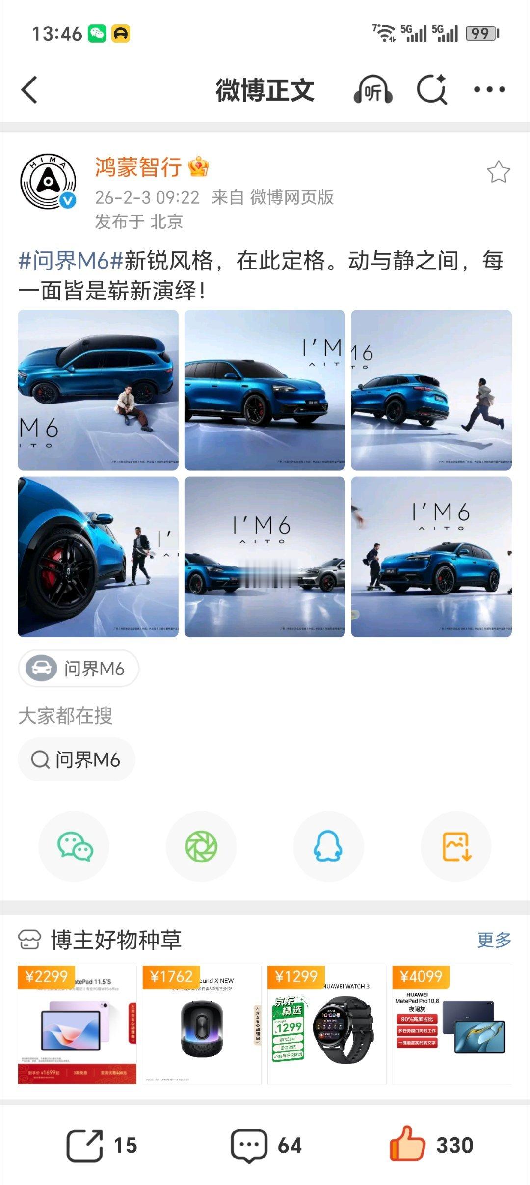 【鸿蒙智行问界M6汽车官图发布,主打新锐风格】