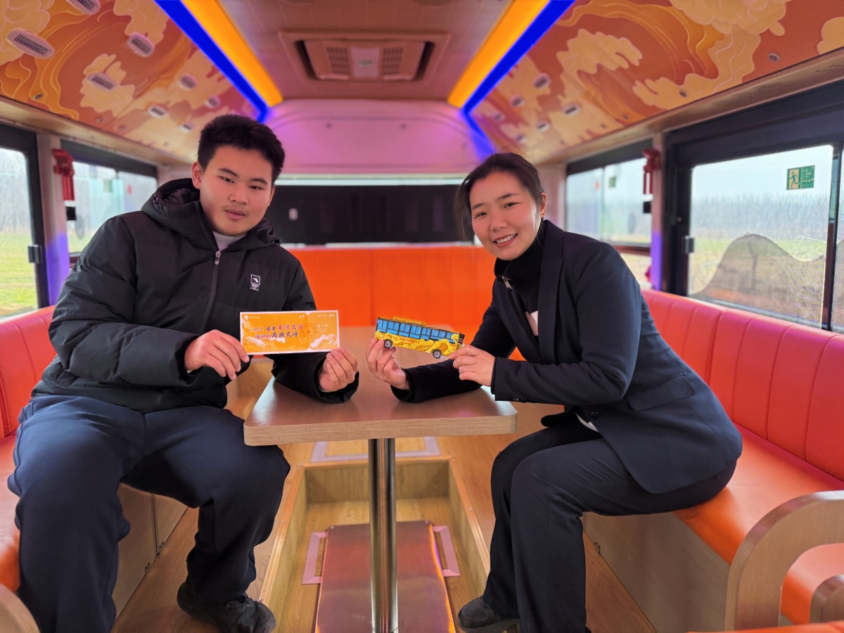 临别前,小张与自己的作品在车旁合影。他说:“希望这个模型能让更多人了解黄河、关注公交。”这位少年用双手与真诚,为城市的文化出行增添了温暖色彩。这份质朴的礼物,不仅是一份少年心意,也映照出“黄河号”所承载的文化感召力。