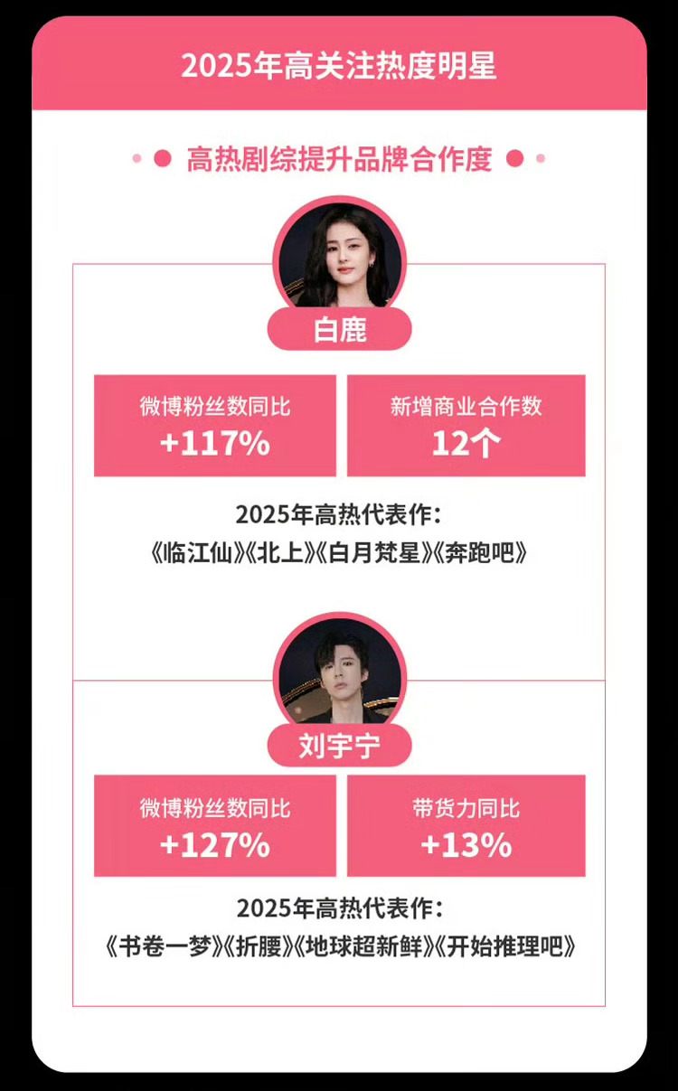 2025微博娱乐白皮书商业价值TOP10:肖战、白鹿、迪丽热巴、杨紫、成毅、刘宇宁、王一博、虞书欣、丁禹兮、檀健次