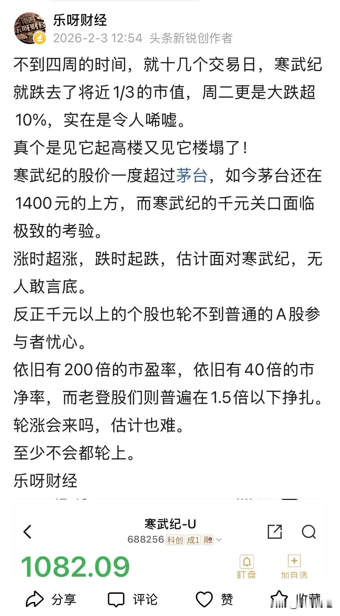 个人认为寒武纪的走势与所谓的不实信息无关,纯粹是涨时超涨了。不否认其在国内GPU领域的地位,但目前来说,未来的走势,仍将在价值回归的道路上还要走很远、很远。