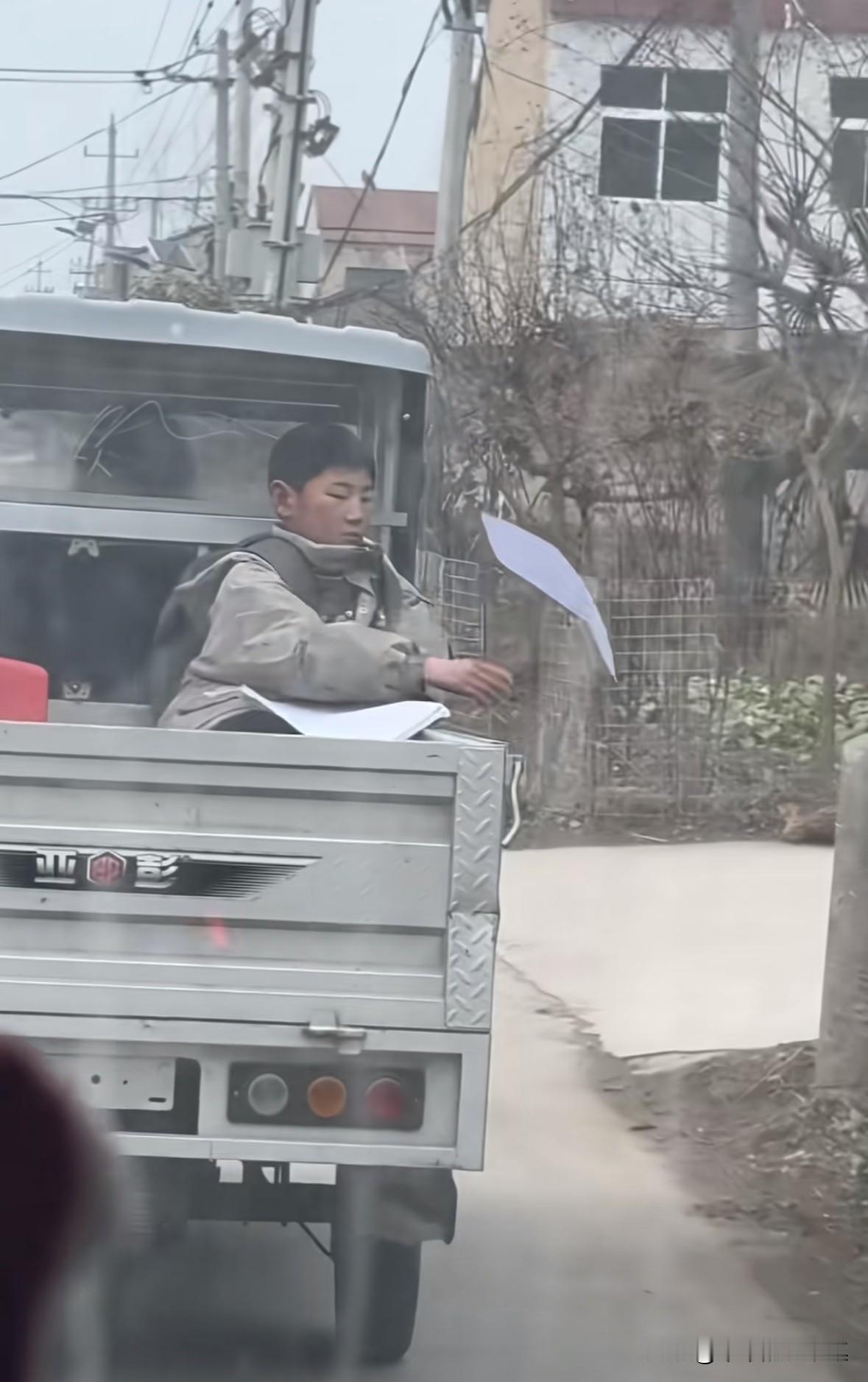 太搞笑了,这个小孩哥为了寒假不写作业,坐在电三轮上扔卷子扔了一路。 后面的车辆直接拍下了视频发到了网上,没想到视频还火了。 网友纷纷喊话:“班主任看到了吗?” 希望班主任看到后,让他重新抄写一份,长长记性。