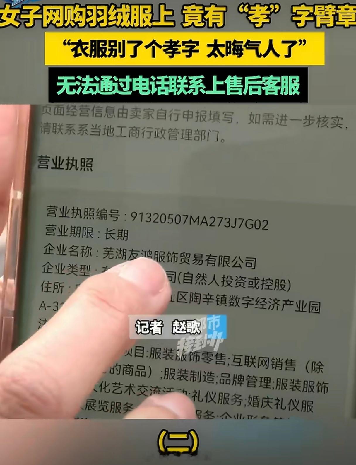 女子网购羽绒服有孝字臂章恶心坏了这一次我站买家,二次销售带着“孝”还不断强调“发