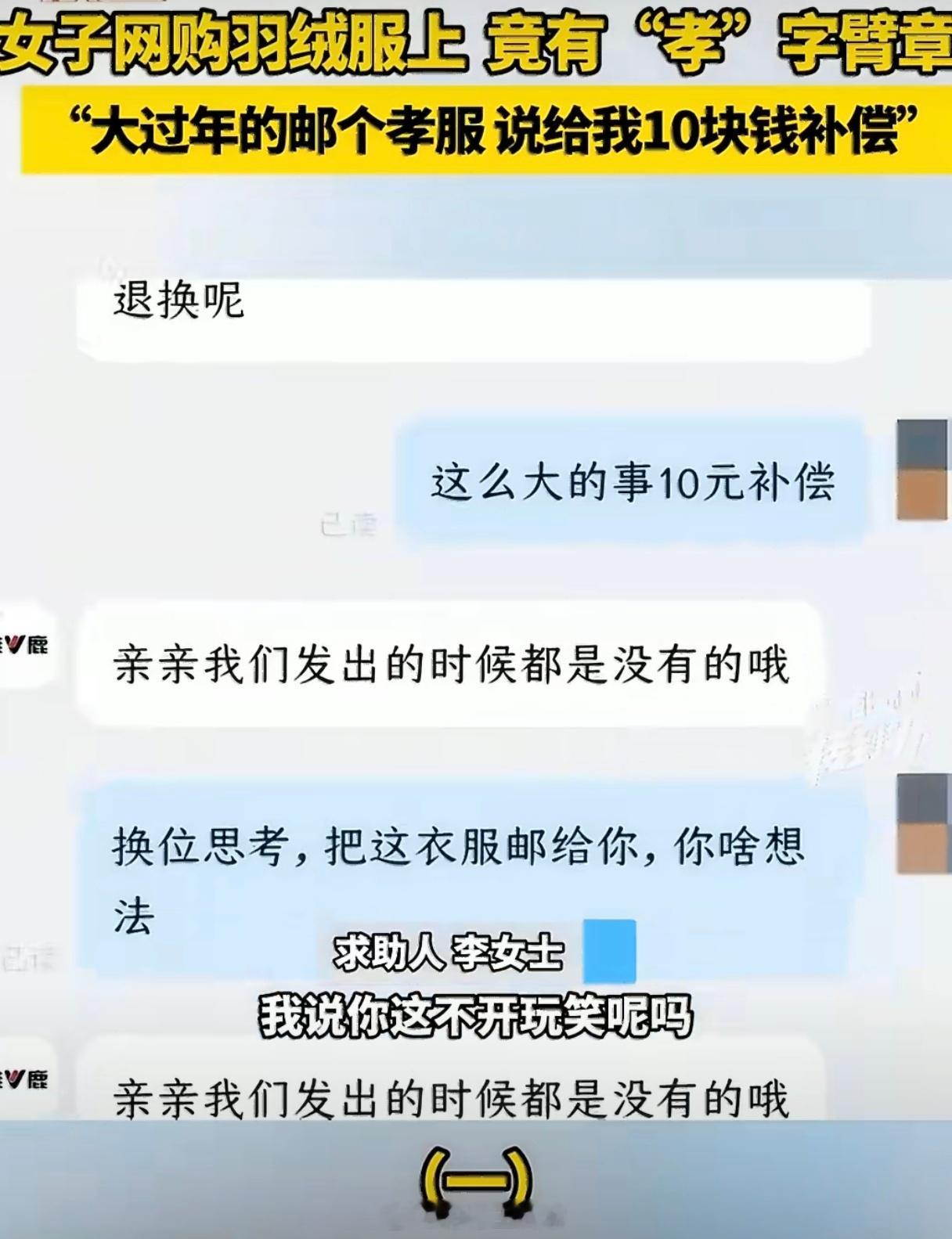 女子网购羽绒服有孝字臂章恶心坏了这一次我站买家,二次销售带着“孝”