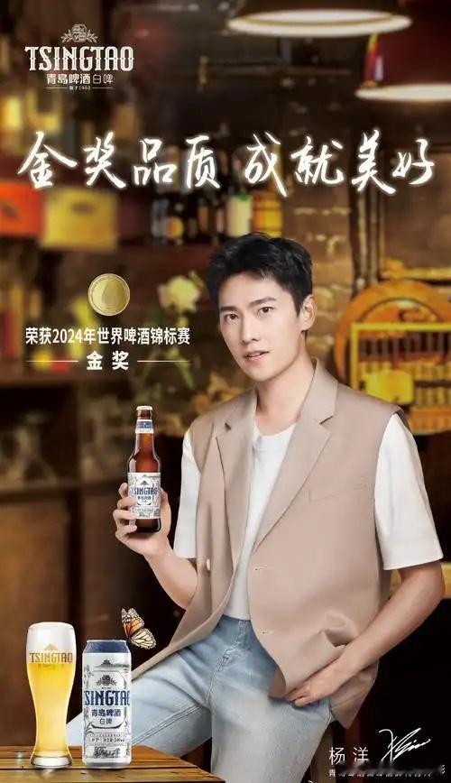 作为青岛白啤代言人,杨洋在新春大片中手持白啤,笑容温润,将“接福抱”的美好寓意自然传递。他的清新气质与白啤的清爽口感相得益彰,为新年注入一抹明亮暖意。