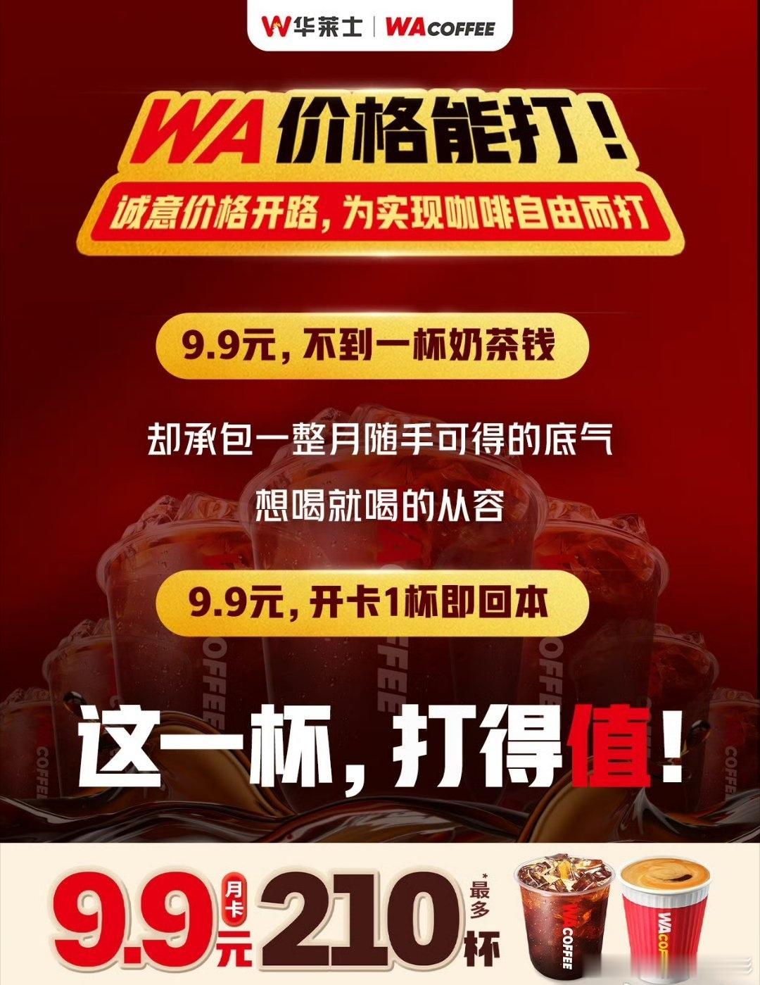 9块9打210杯华莱士WA咖啡 【华莱士WA咖啡|一杯在手,万店上新,解锁咖啡新体验】