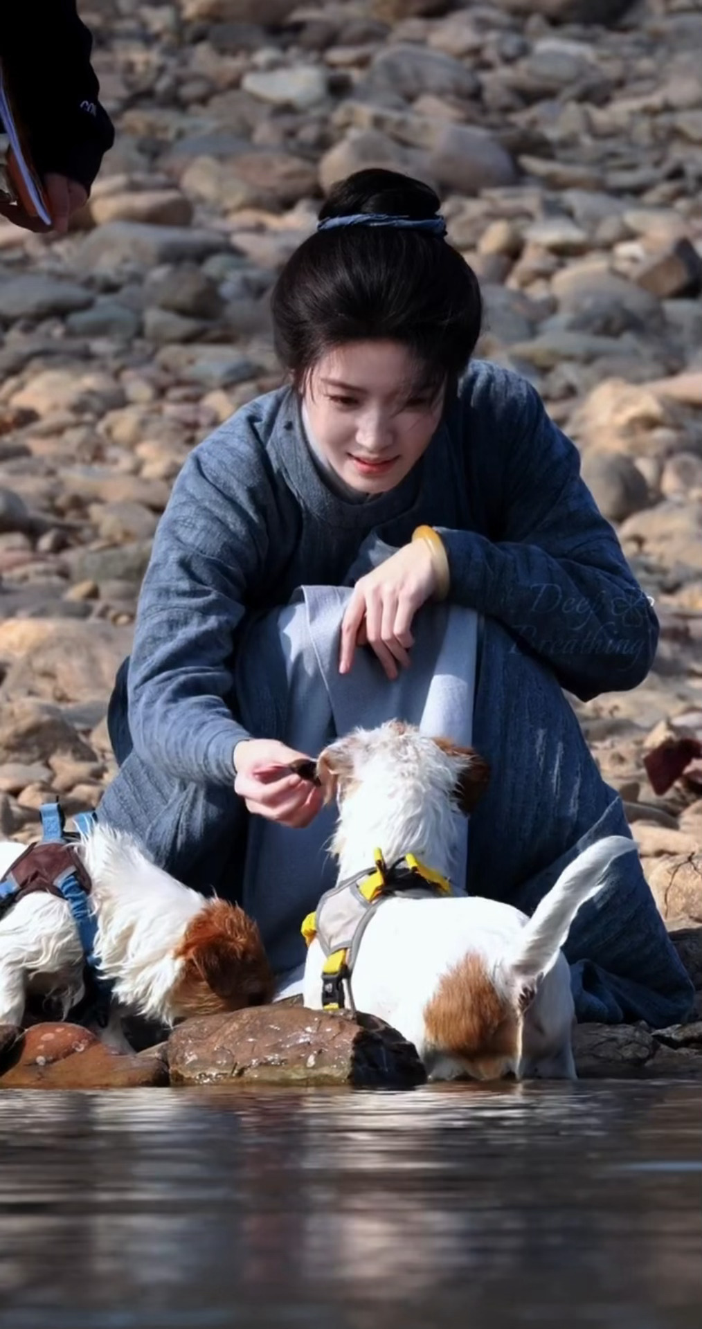 晓晓陪巴豆妹妹玩水中画面里有三只萌物卢昱晓陪小狗玩水