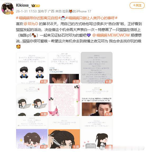 喵娲娲帮邓为粉丝圆梦微博之夜 谁懂啊!用创作诉说喜欢,用坚持等待回应,的追星故事真的太好哭了。喵娲娲不只是抽票,是把每一份真诚都捧在手心,帮热爱发光,帮思念见面!