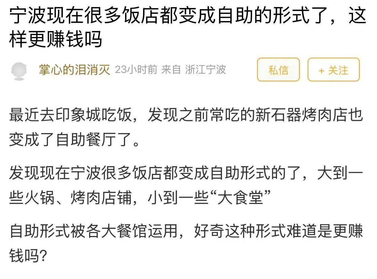 宁波一烤肉店变自助模式网友怀疑是不是要关了 宁波这个知名连锁品牌经营多年,现在竟然推出了自助餐,网友疑惑:难道是要关门了?因为经营了那么多年都是点菜的方式,突然推出了自助,大家都表示非常惊讶。其实现在最怕的就是没有人气,这种“丰俭由人”的定价策略,可以吸引更多追求性价比的顾客,这样也达到了宣传的目的。